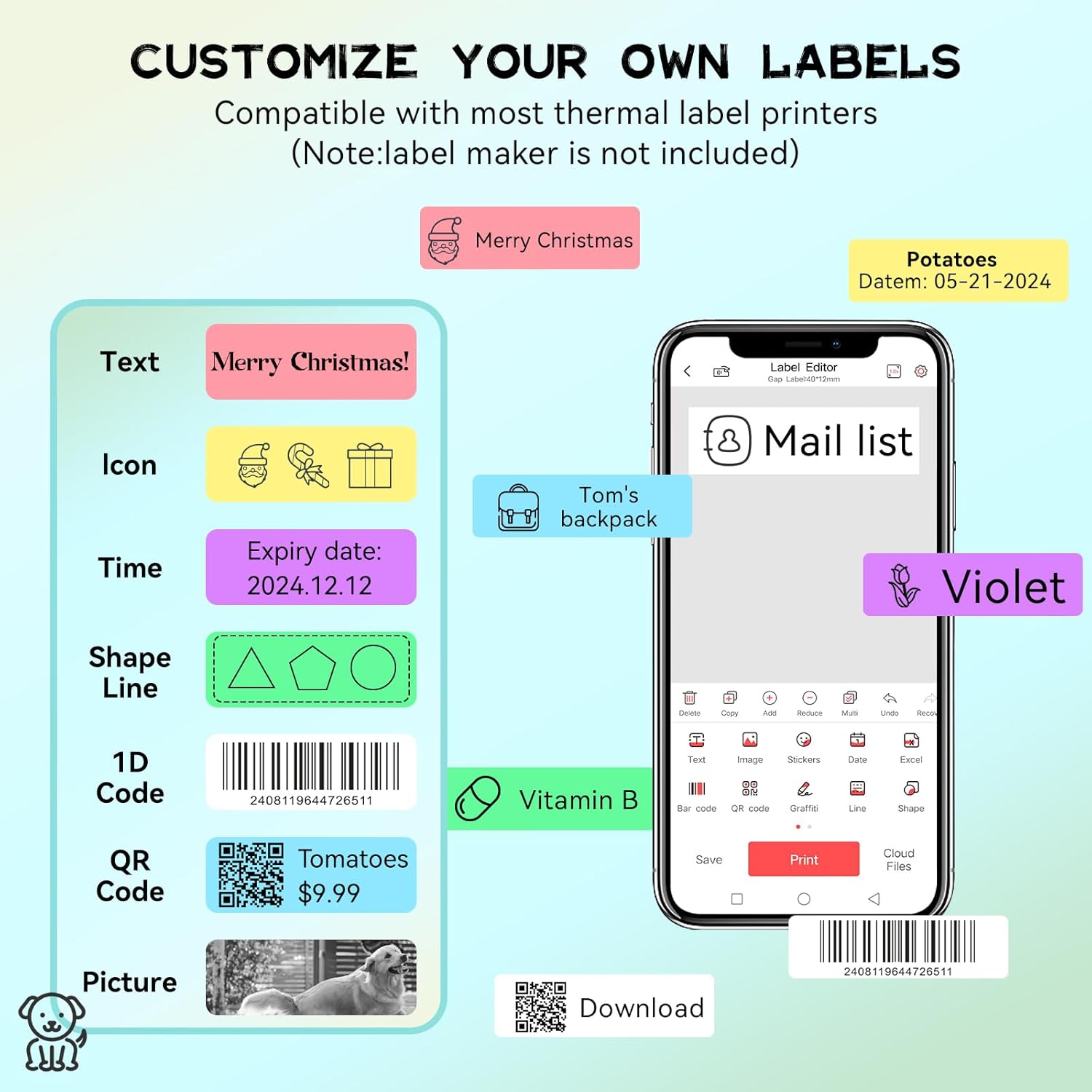 - Note: If you are unable to print, please check first: 1. Confirm whether the sticker is placed upside down, 2. Confirm whether the printer has sufficient power, otherwise charge it before use. Not Suitable For Encrypted Printer — NIMBOT D11 New Model, MAKEID Q1/E1/L1. You could confirm with us you are not sure whether it is suitable for other printers.