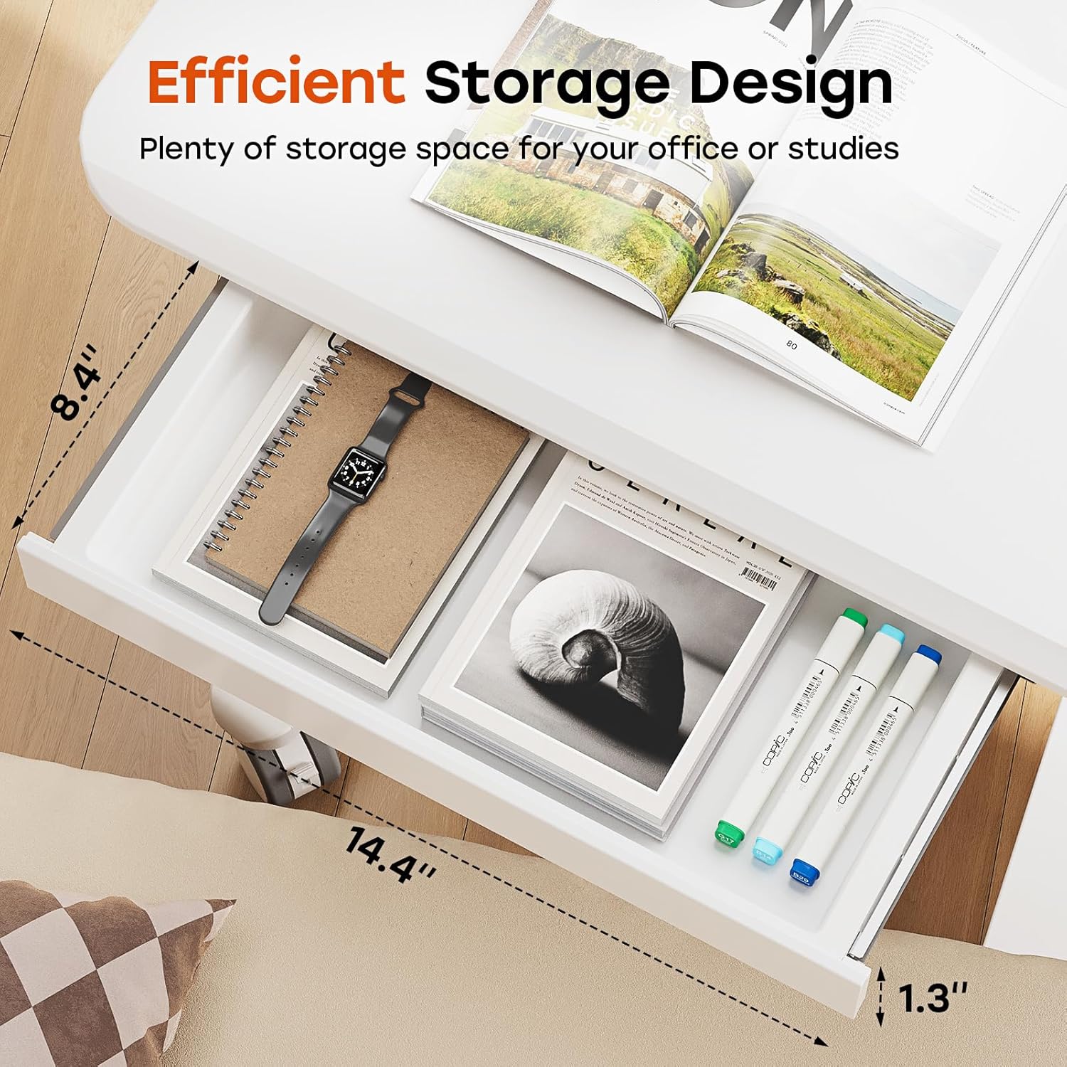 - Convenient Storage Drawer: Small standing desk features a drawer (Size: 14.4"Γ8.4"Γ1.3") that offers generous storage for office supplies, helping maintain a clean workspace. Additionally, 2 hooks design facilitates organization of headset or backpack