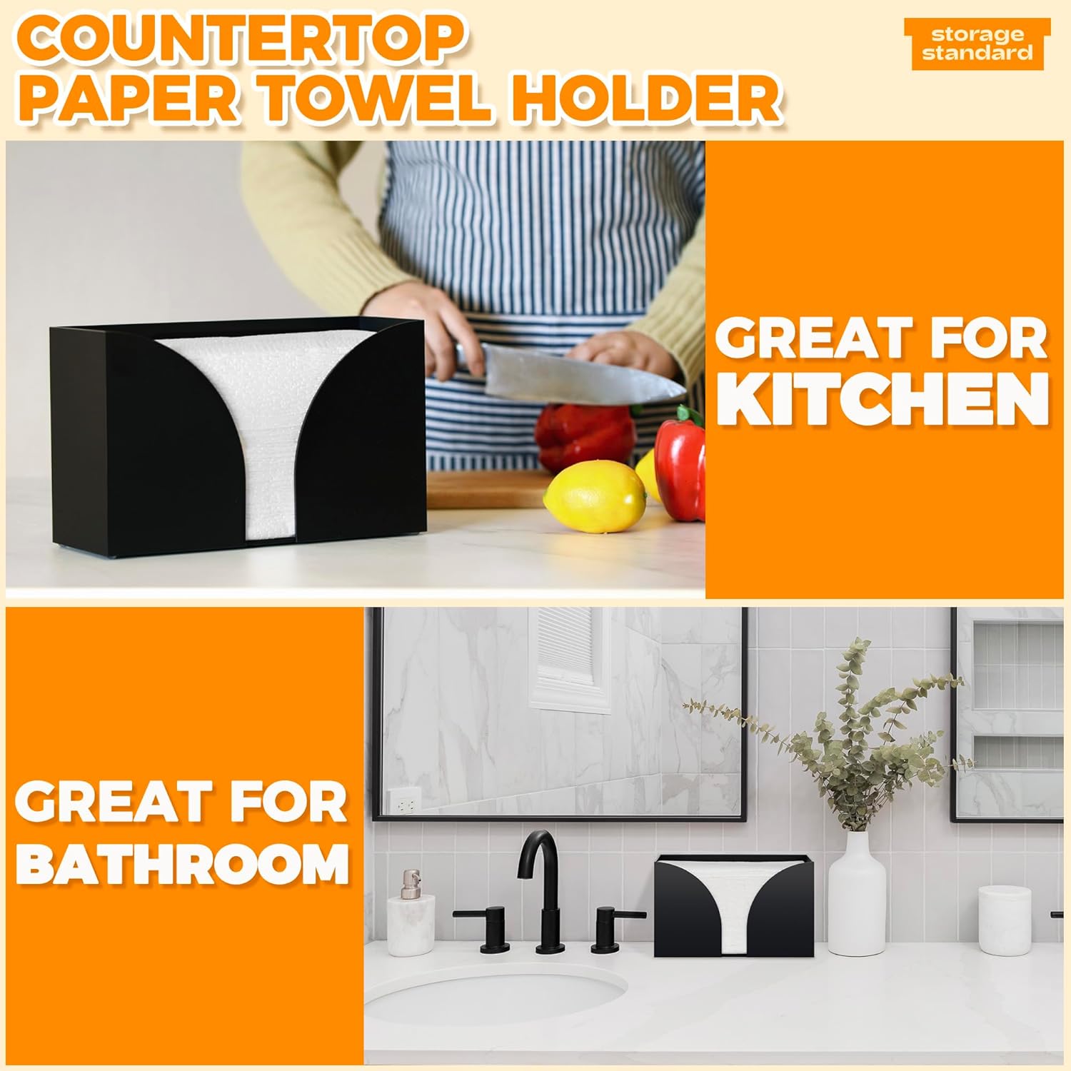 Storage Standard Multifold Paper Towel Dispenser Countertop - Matte Black Paper Towel Holder Bathroom, Durable Acrylic Napkin Holder for Bathroom, Kitchen, Office & Restaurant, 10.75 x 6.5 x 4 Inches