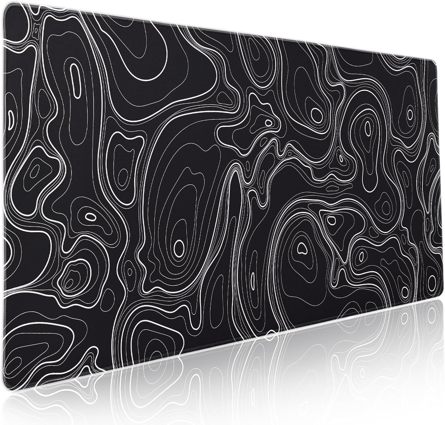 Topographic Map Black Gaming Mouse Pad XXL Minimalist Topo Geographic White Lines Extended Large Mousepad Desk Pad Non-Slip Rubber Base Stitched Edge Keyboard Pad Playmat for Computer,35.4×15.7 in