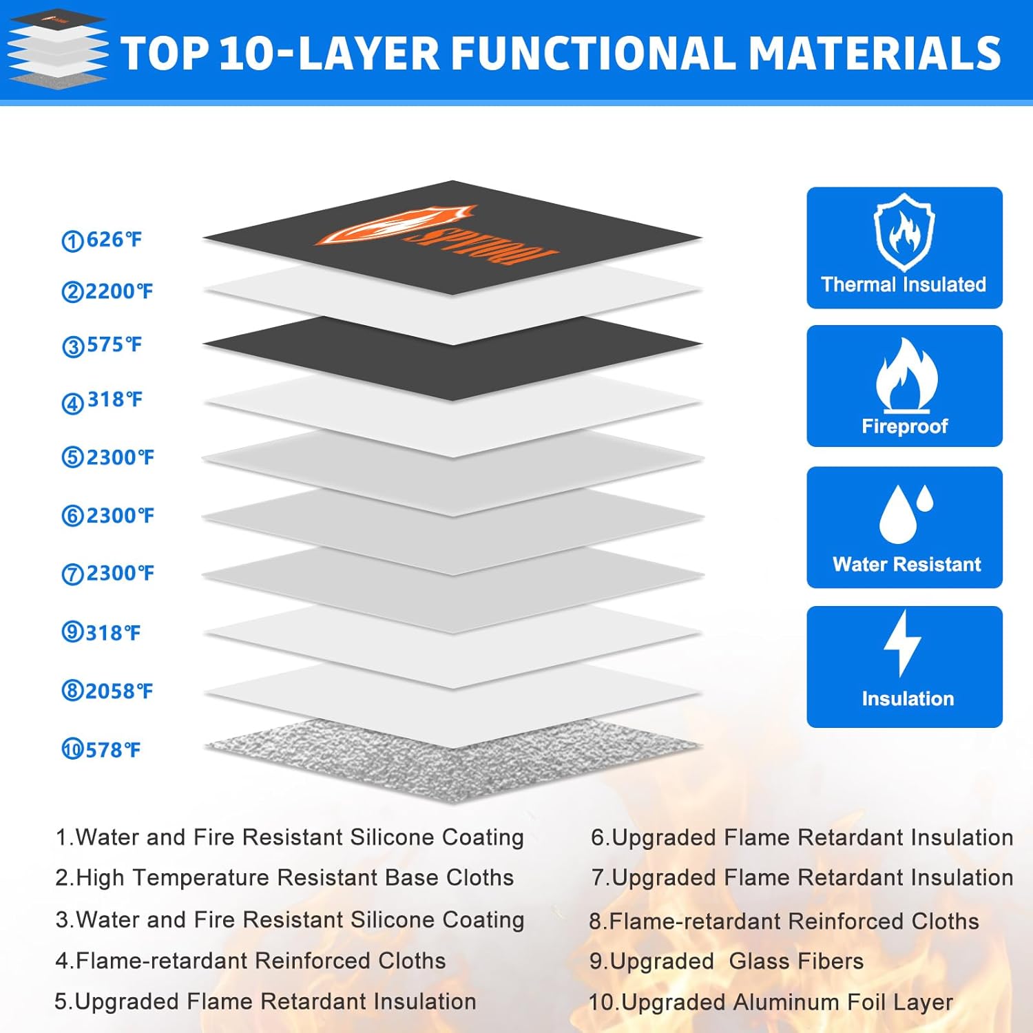 - UNIQUE HEAT DECAY STRUCTURE: Thanks to the Upgraded 10 layers of functional materials with heat insulation, fireproof waterproof document bag can withstand high temperatures up to 6500Β°F; And the unique nested design allows fire safe bag has independent space between the layers of materials, so that heat transfer from the different non-direct contact media, constantly weakening, blocking heat transfer; Fire proof lock box give you enough time to save your valuables from fire