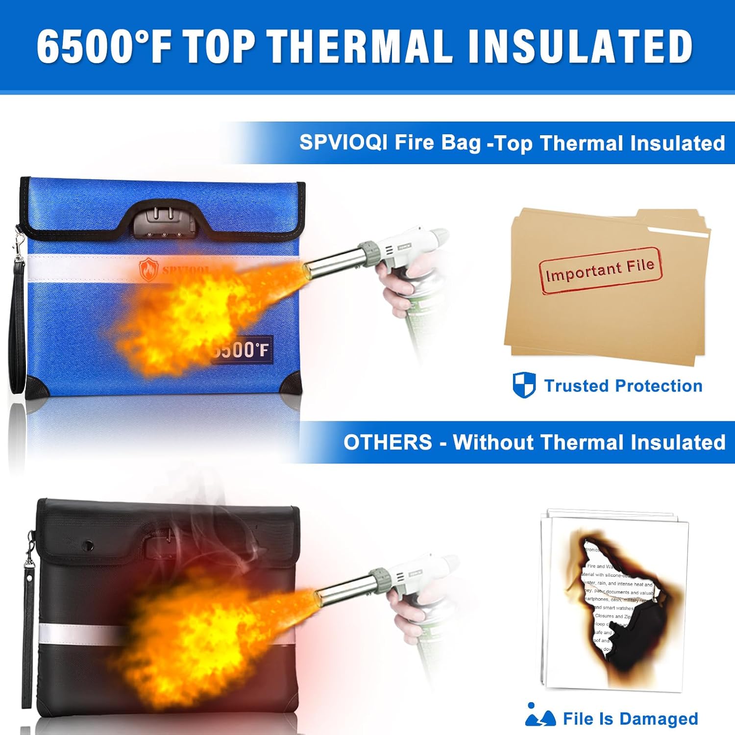 - 360Β° FIREPROOF DESIGN: This SPVIOQI fireproof document bag mainly adopt a 10-layer function material structure of fire protection and heat insulated; The fireproof money bag for cash is sewn with flame-retardant thread and fireproof hemming, to prevent fire from damaging the fireproof bag from the edge, closure by velcro flap, so that its zipper completely prevent fire, which make the fire proof money bag for cash 360Β° fire resistant