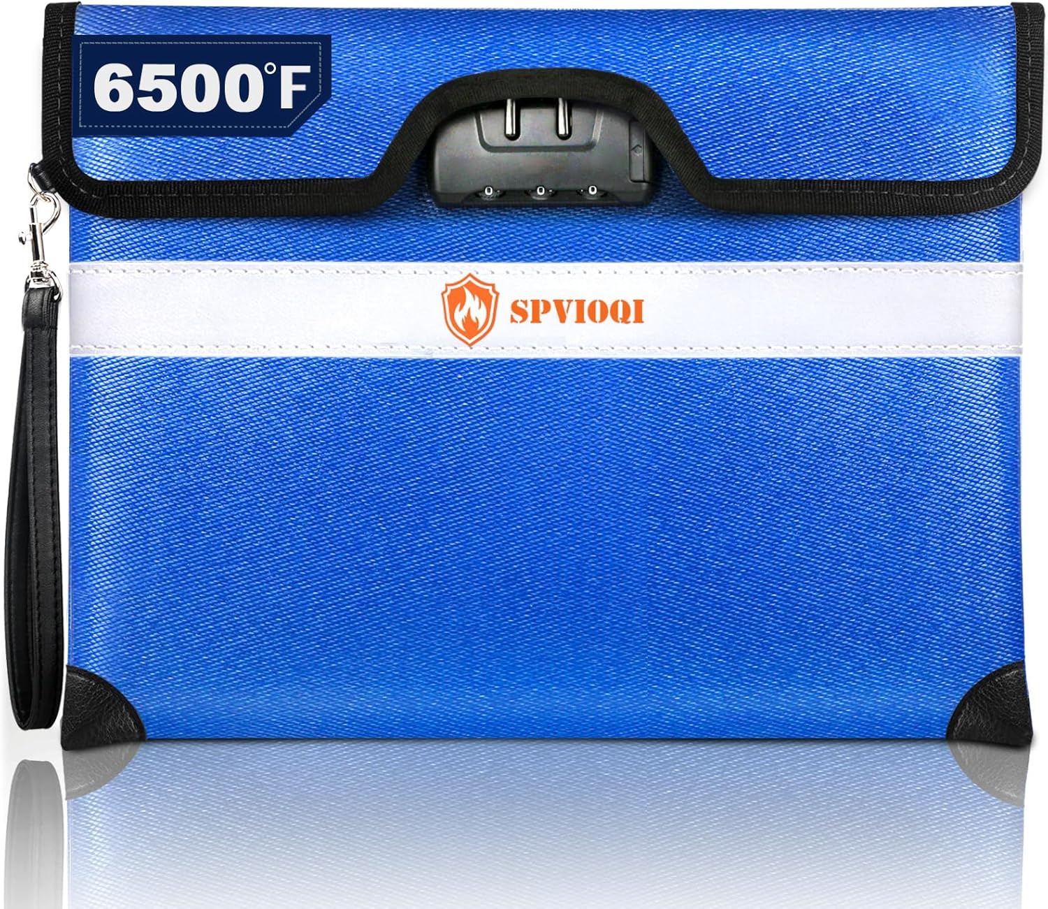 SPVIOQI 6500F Fireproof Document Bag with Lock, Upgraded 10Layer Heat Insulated, Water Resistant, Blue, Large, Rectangular, Fireproof Money Bag for Documents, Cash, Valuables