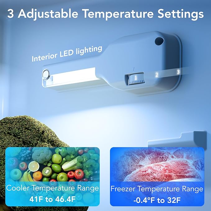 - The small refrigerator for bedroom with a thermostatic knob, allows precise temperature control: 32Β°F to 50Β°F in the refrigerator compartment and -1Β°F to 3Β°F in the freezer compartment. This ensures optimal temperatures for different types of food, meeting the diverse temperature requirements of various ingredients.