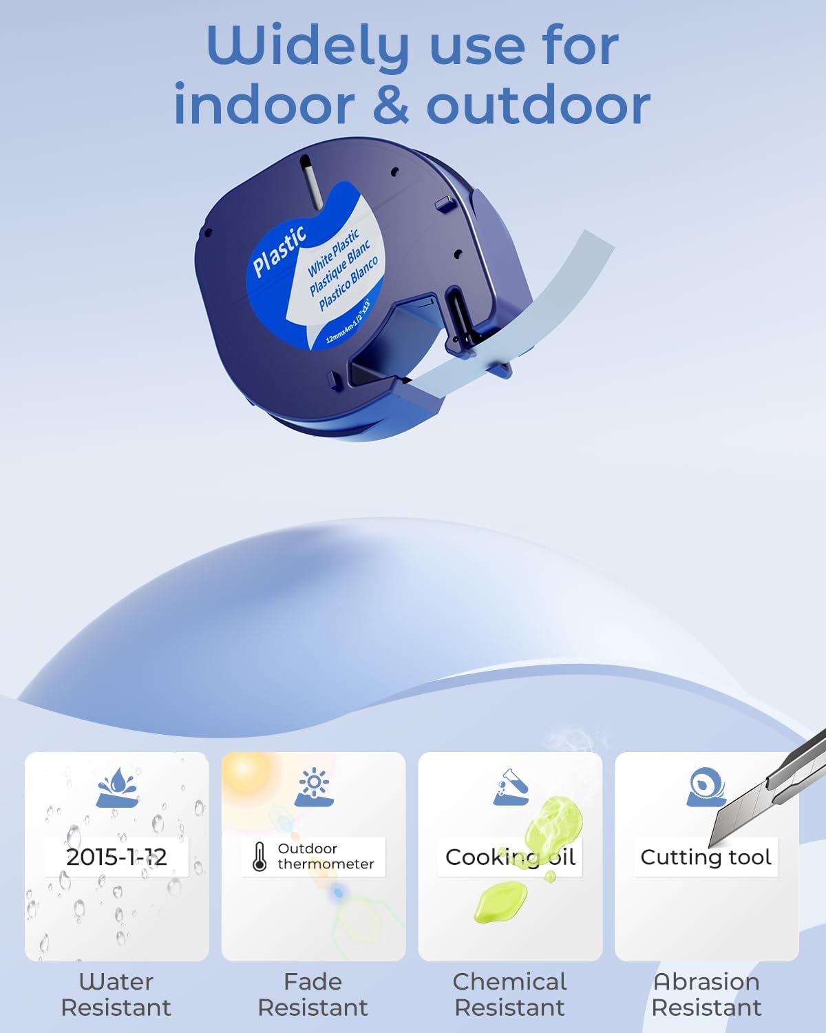 - Easy to Peel: The split back of our compatible with DYMO Letra Tag Refills 91331 label tapes is easy to remove, withstand water,oil proof,Strong viscosity with no sticky remnants when the labels are peeled