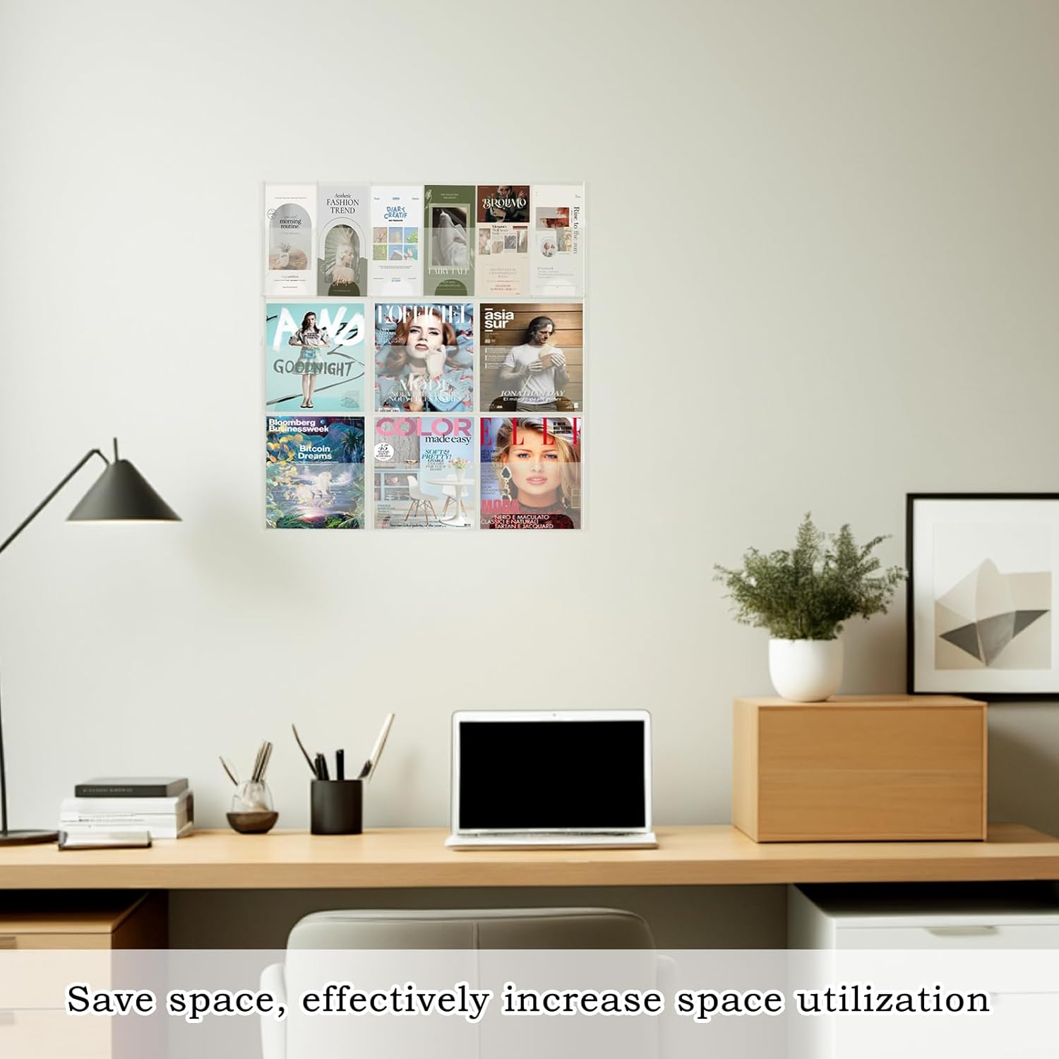 Acrylic Brochure Pamphlet Holder, 6 Magazine Holders and 6 Pamphlet Holders, Clear Brochure Display Stand Wall Mount, Trifold Flyer Rack, Literature Storage Rack for Home, Offices, Waiting Room