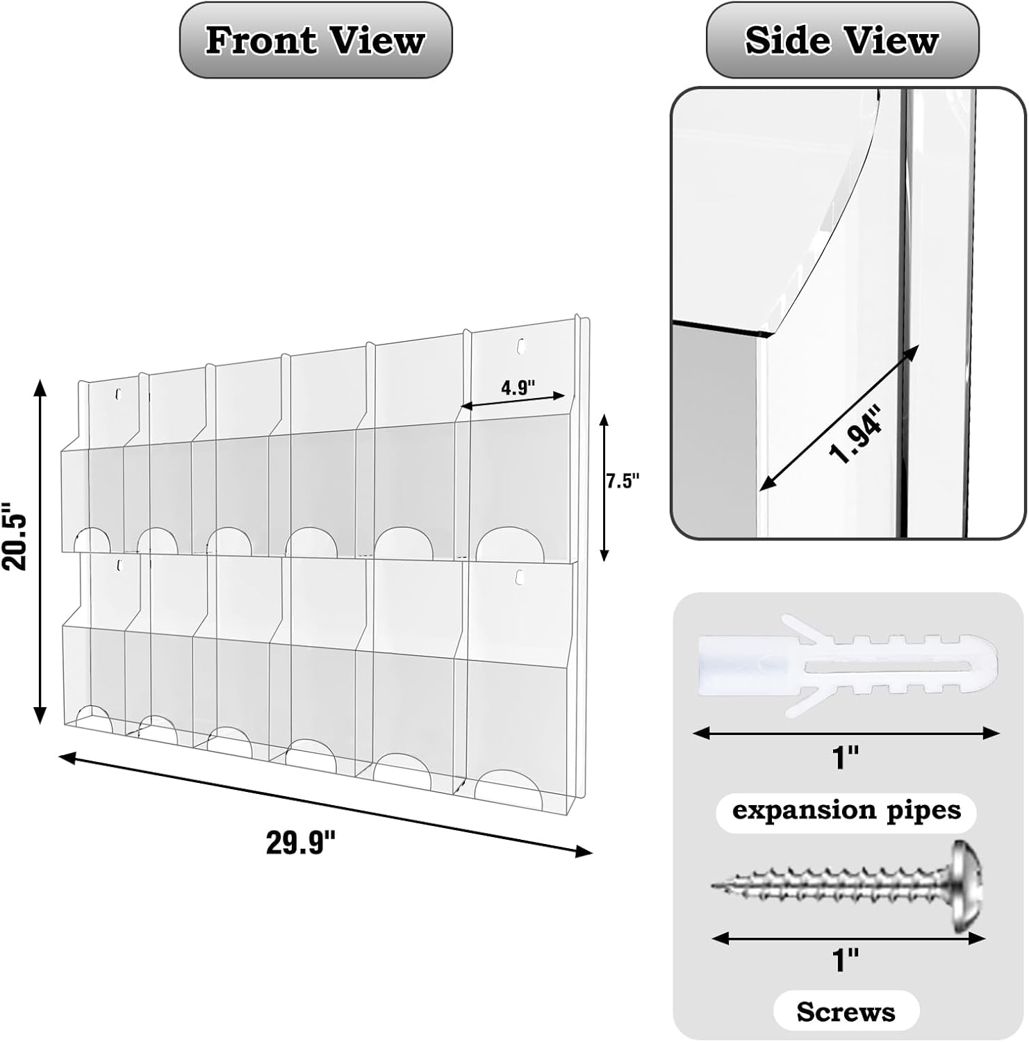 - Packing List: Inside the package, you will discover magazine holders and brochure holders, along with all the necessary installation accessories, including screws and expansion screws. The package also includes clear and easy-to-follow installation instructions, ensuring a hassle-free setup process