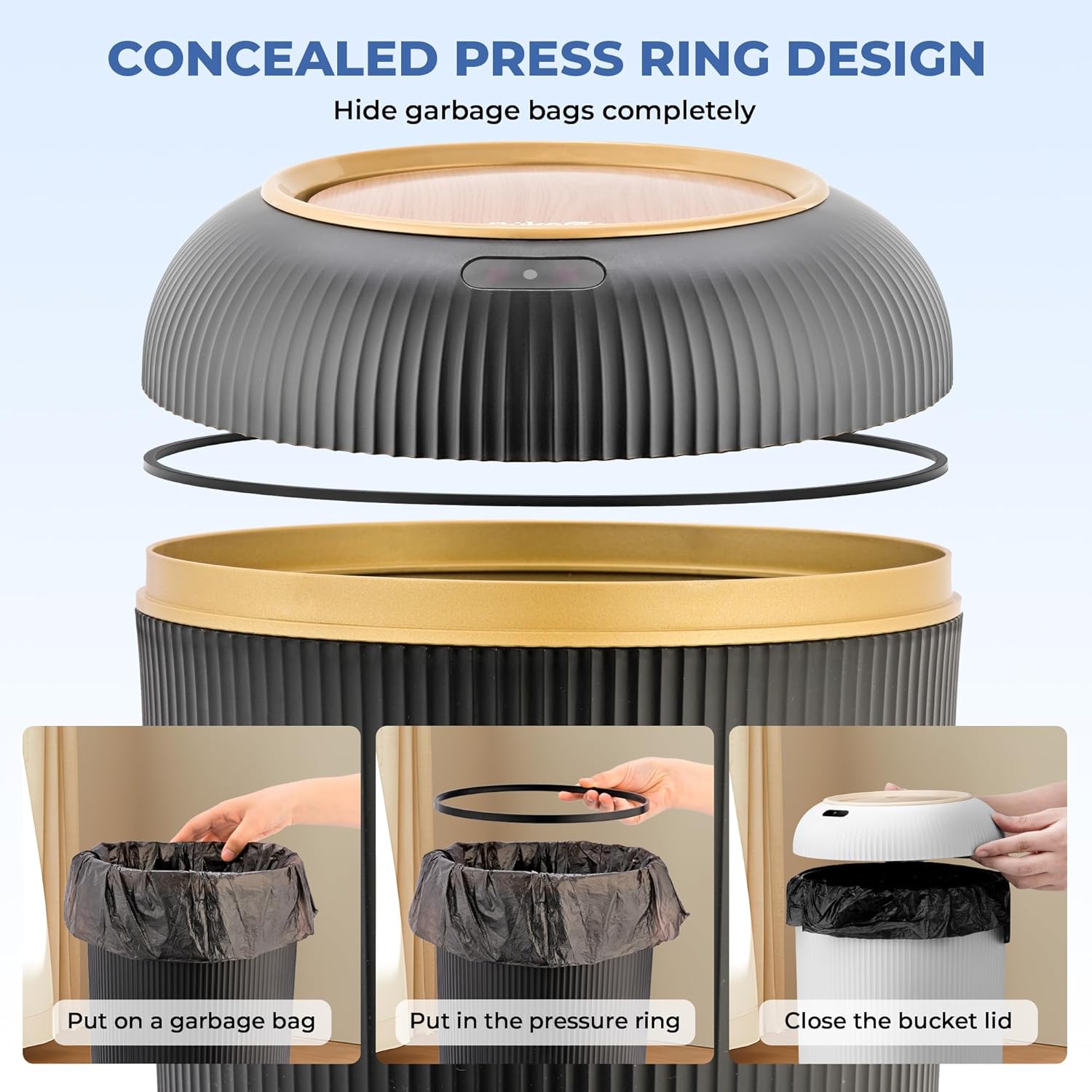 - 【IMPORTANCE NOTICE】 - Automatic trash can is a bathroom motion sensor trash can, customers need to install 2 AA batteries as well as follow the steps to put on the garbage bag. In the process of use, please do not hesitate to contact us immediately if any problem occurs