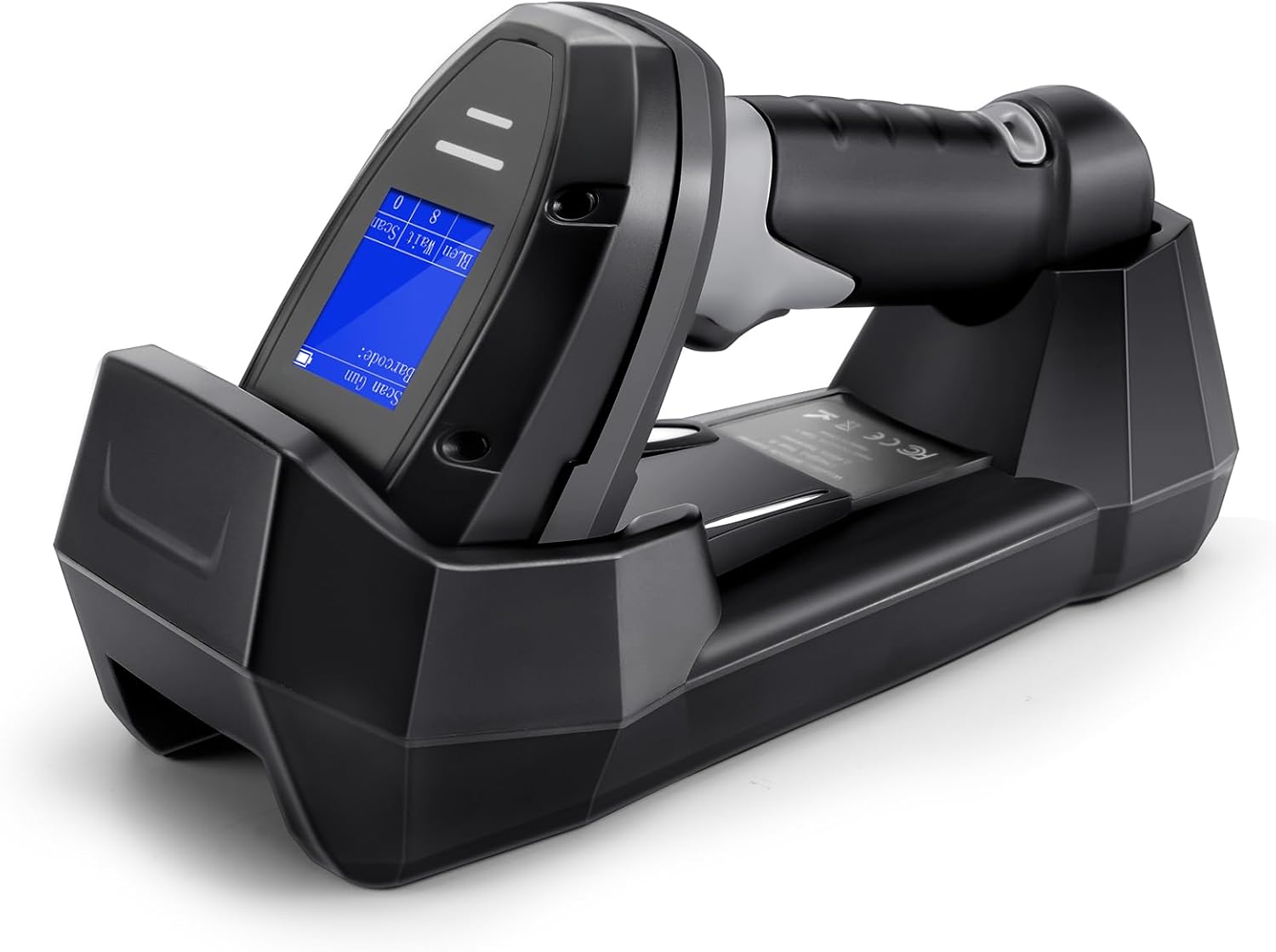 OEWSCAN Barcode Scanner with Screen, Barcode Reader Industrial Pro Version Wireless 1D 2D QR Code Scanner 2.4G Wireless Ultra Long Distance Transmission Handheld Bar Code Scanners with Charging Cradle