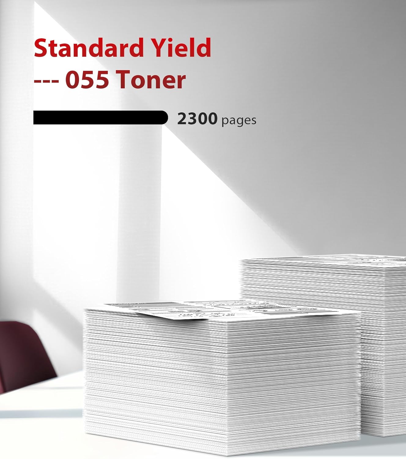 - 2. Page Yield:Up to 2300 pages for toner replacement for canon 055 black toner. Also availble for canon 055h toner cartridge set. (Letter/A4, at 5% coverage)