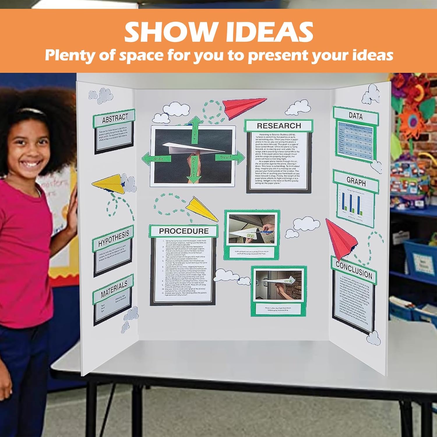 - Easy To Use: The trifold display board has a smooth surface, perfect for writing or adding visual effects to record and present more display elements, use self-adhesive stickers and black-edged science project stickers to create a vivid and efficient presentation that leaves a lasting impression