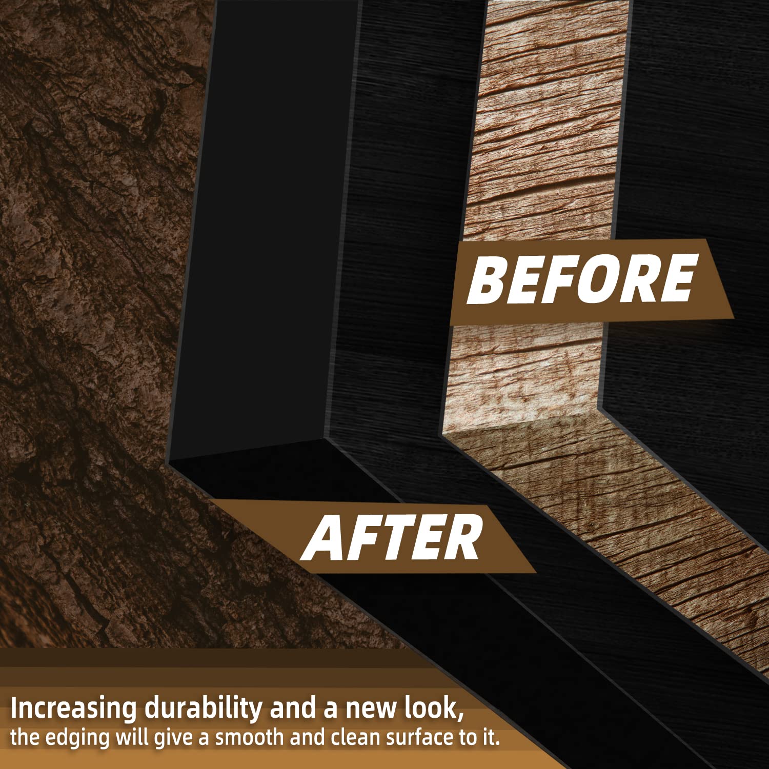 - √【UPGRADE DESIGN】- The size of Edge Banding is 1 inch x 25ft, and the thickness is 0.6mm, It's suitable for your daily needs. Edge Banding is a strip of wood veneer with heat melt adhesive pre-applied to the back. You simply hold the edge banding in place, then run over it with a heated iron. After cooling, please press it with your hand and trim off the sides with the Utility Knife, 0.6mm thickness can let you easy to do.