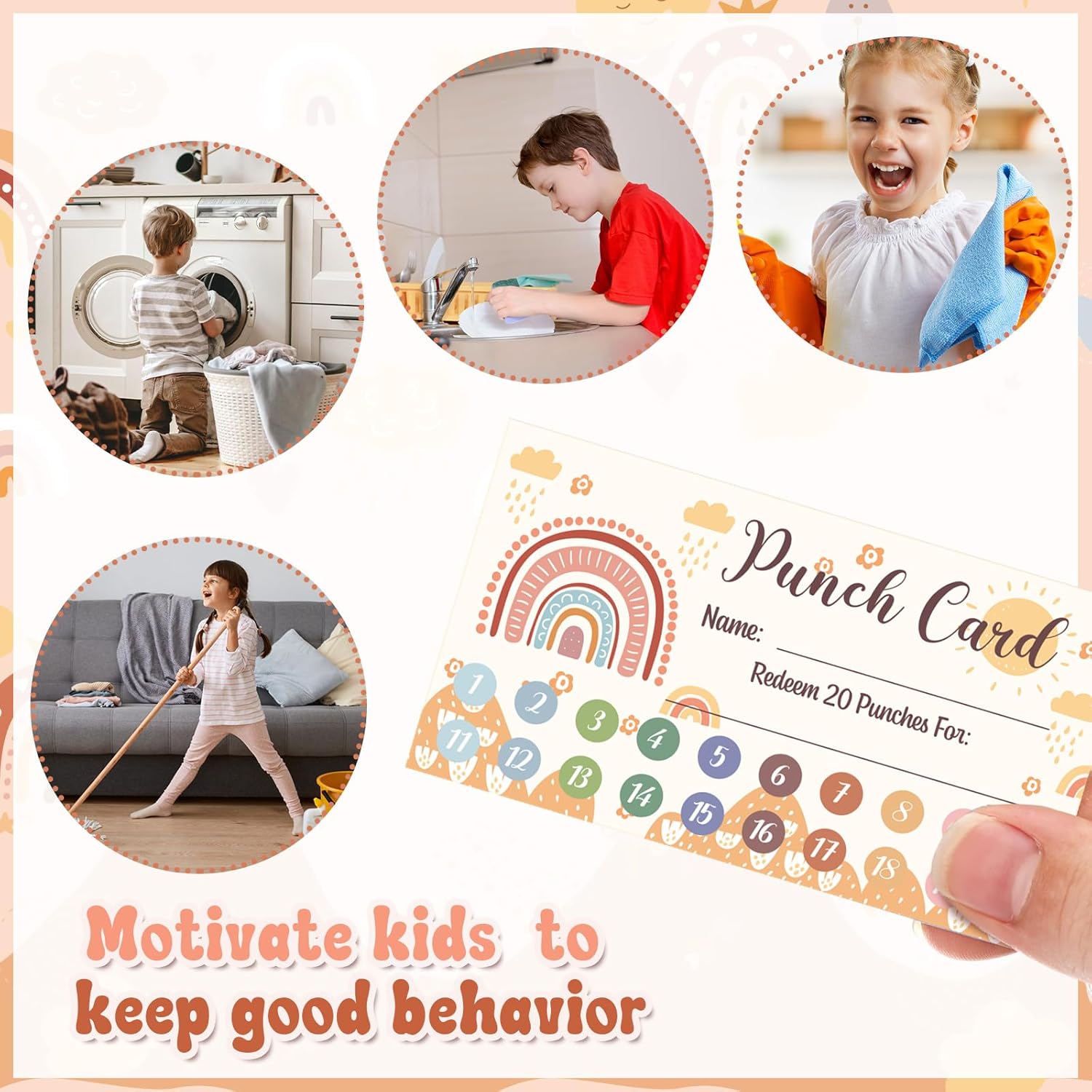 - Watercolor Design: punch cards for kids at home has 8 different boho styles with vibrant patterns and colors, printed with letters like 'punch cards', 'redeem 20 punches for', etc., simple and generous; Vivid and eye-catching, blank back design allows you to send other messages to students; Punch design 1 to 20 score, you can punch in according score