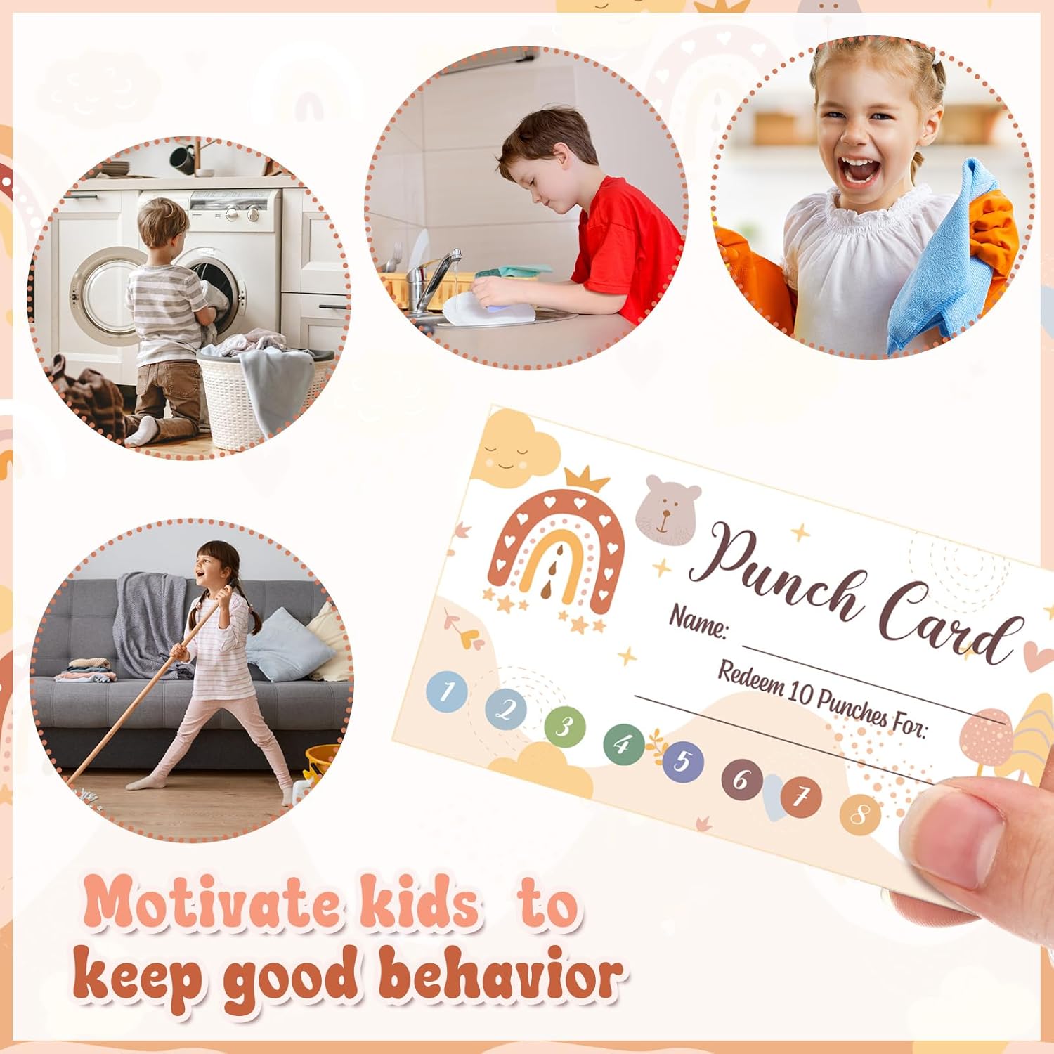 - Fun to Use: you can punch one hole on the reward chart for kids every time they accomplish a goal or task, when all the 10 punches finished, celebrate accomplishments with them and give them the rewards