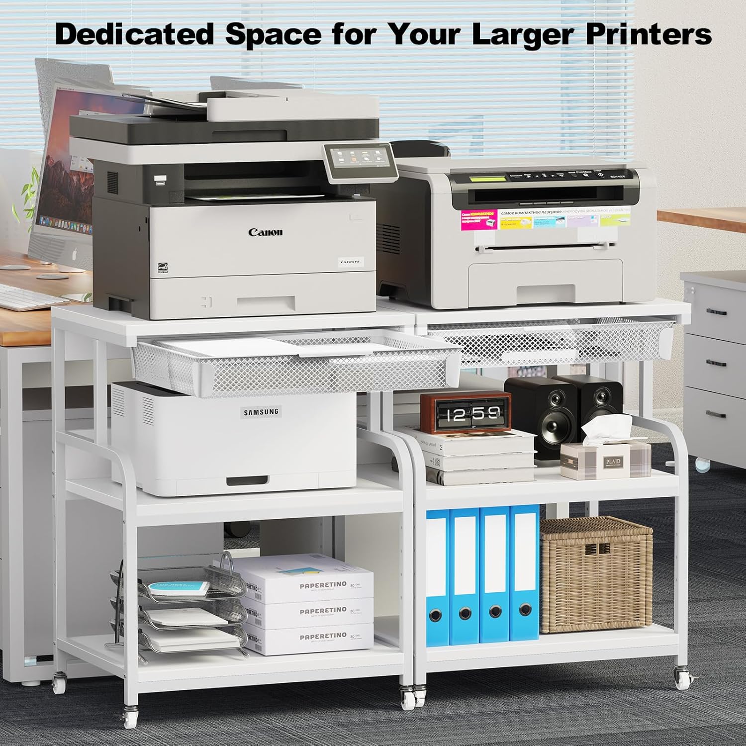- Widened Desktop: The updated printer stand has widened desktop. This wide desktop printer stand has three tiers with enough space for your multiple printers, paper trays, books, or other items. If you are looking for a multi-tier wide desktop printer stand, this is for you!(Panels made of FSC-Certified wood)