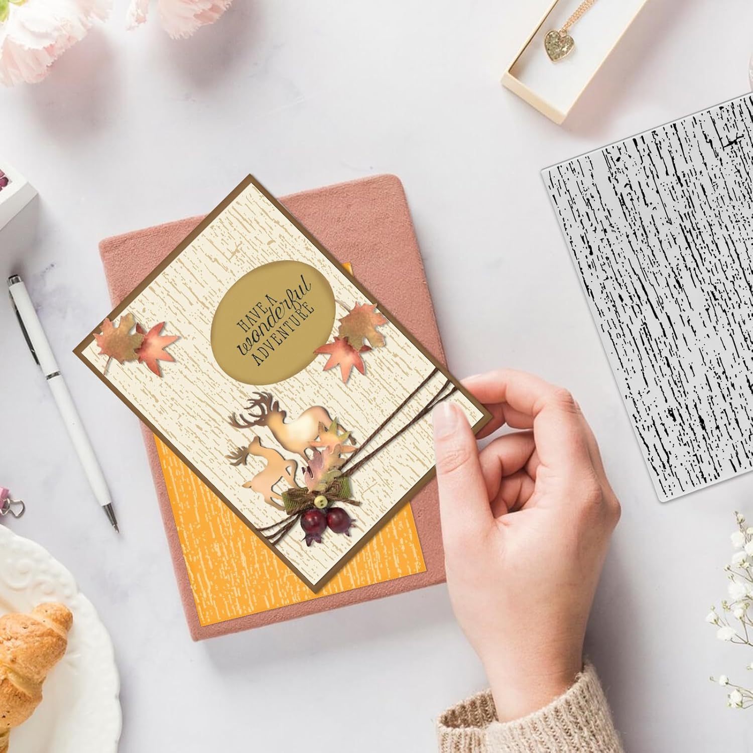 - Package: You will get 1 piece wooden textured embossing folder in one package