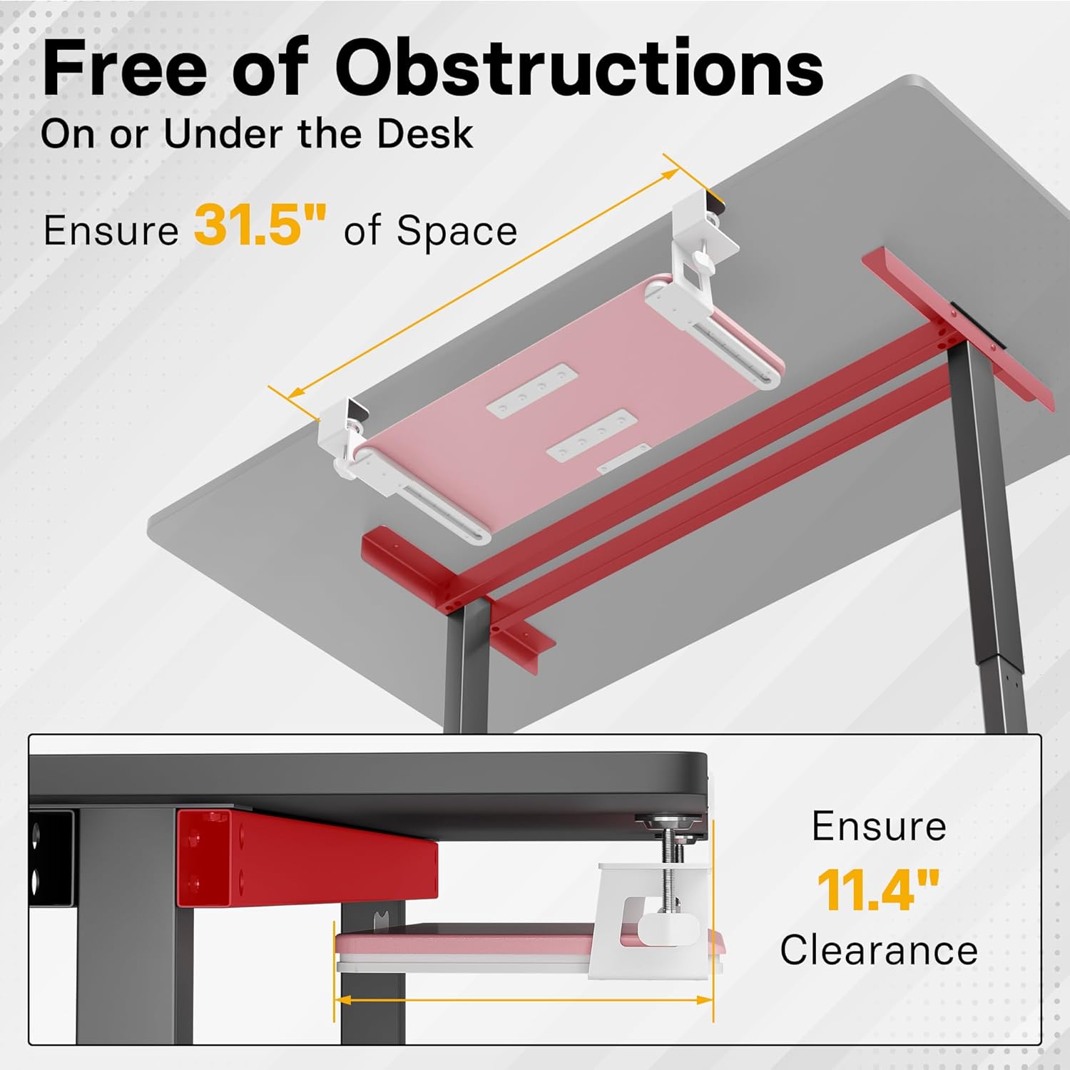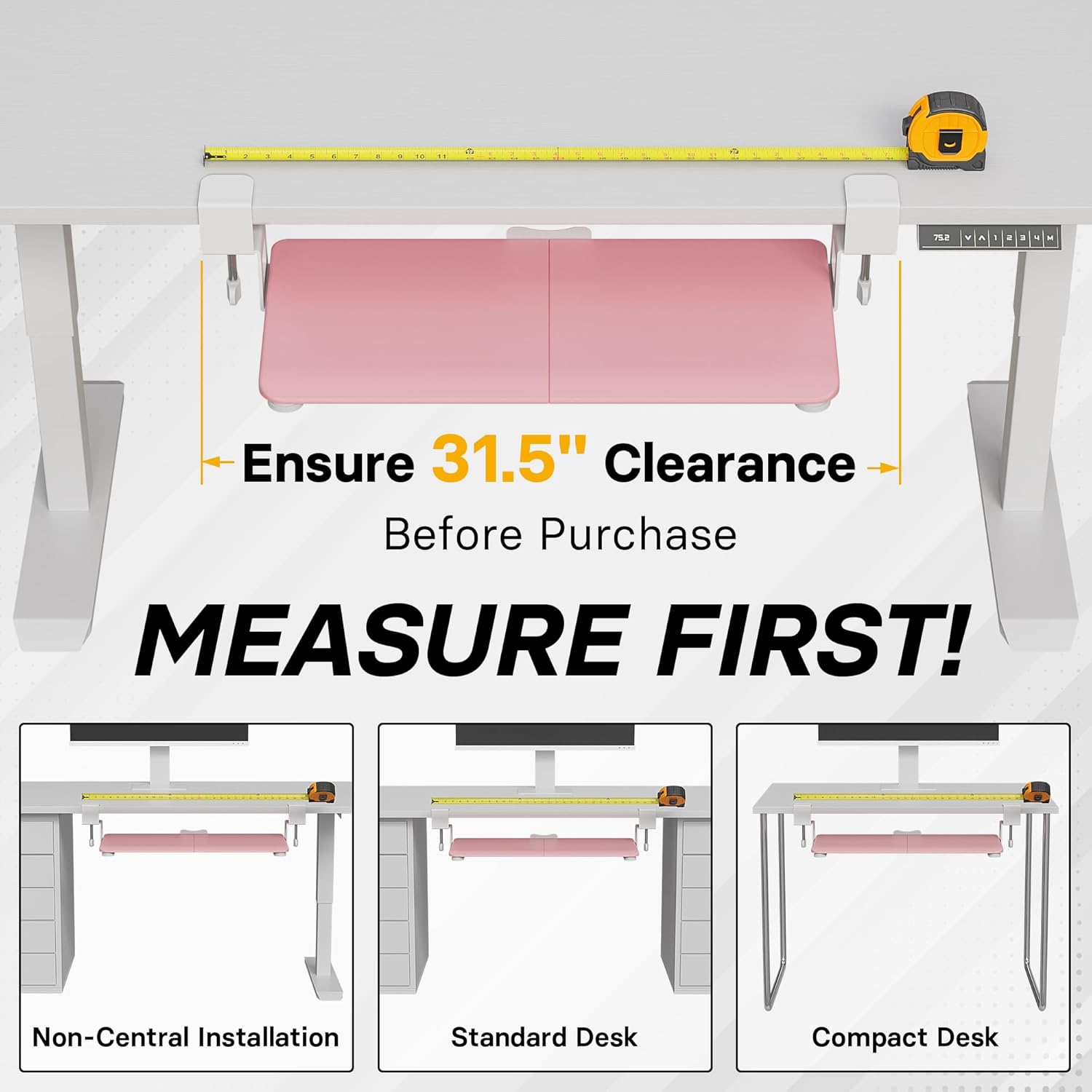 - ✅ MEASURE YOUR DESK BEFORE ORDERING – The tray requires at least 31.5" of width and 11.4" of depth underneath your desk to slide in and out smoothly. Confirm these dimensions to avoid fitment issues