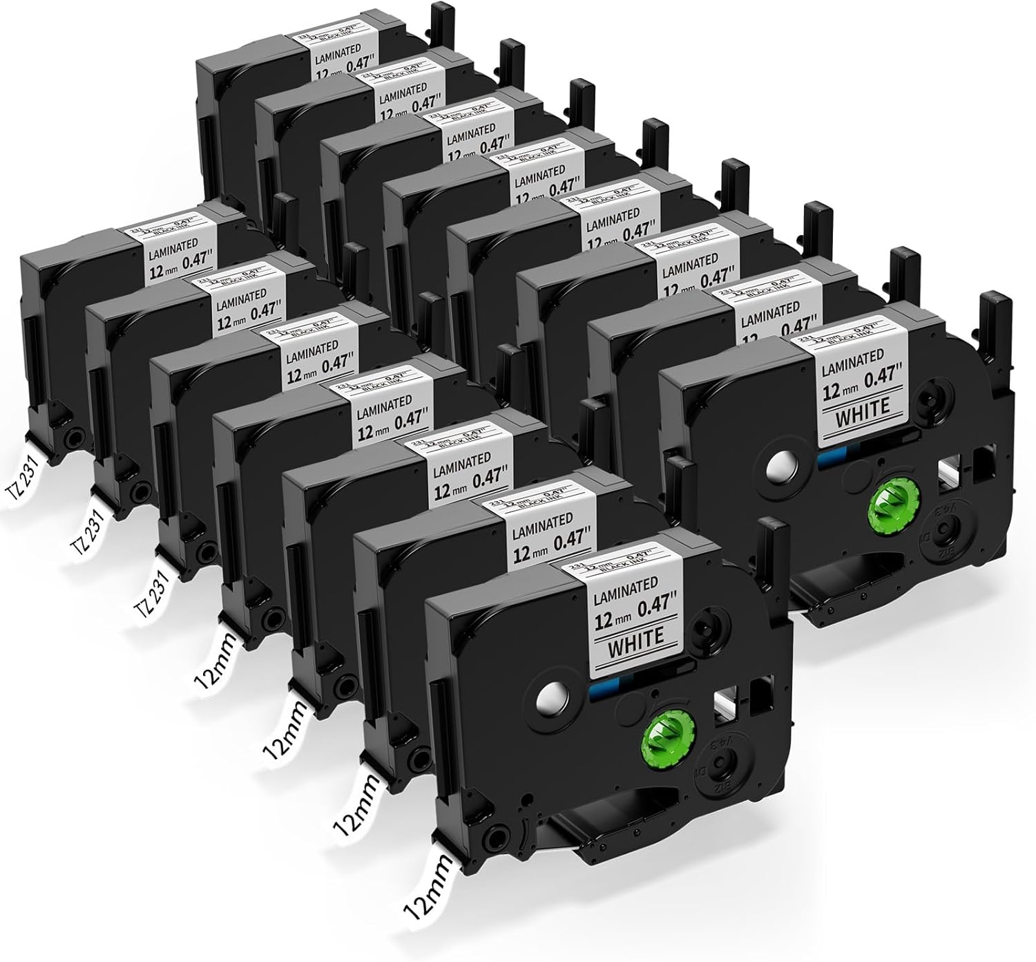 15 PK Label Maker Tape Replacement fot Brother P Touch TZe-231 12mm 0.47" Laminated Label Maker Refills- Compatible with Brother P Touch PT-D210 D220 D200 H110 D410