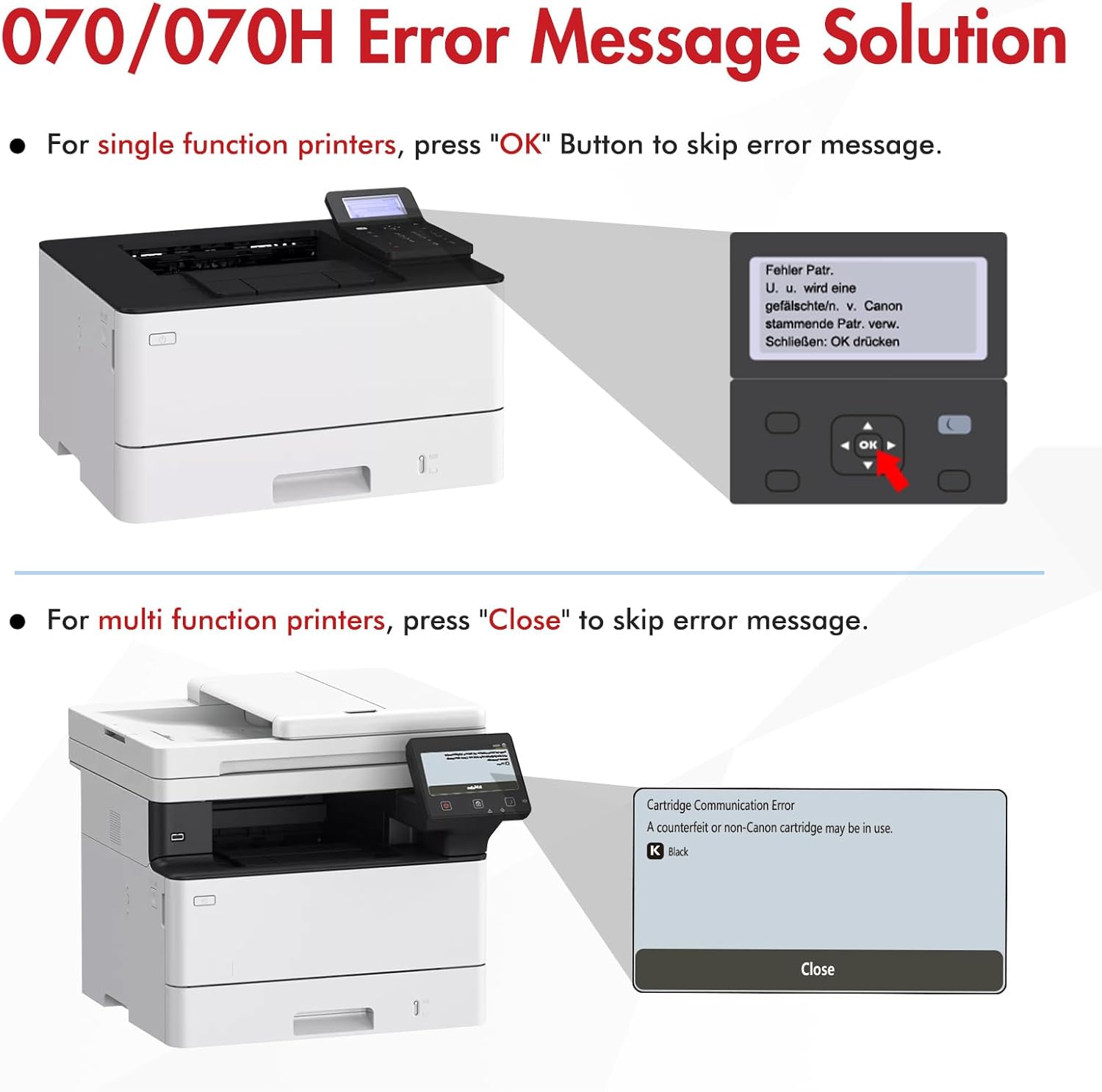 - Page Yield: Up to 3,000 pages for each 070 toner cartridge(Letter/A4, at 5% coverage)