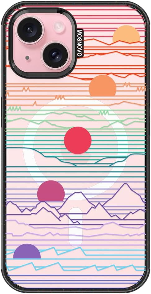 MOSNOVO Magnetic Case for iPhone 15, 10ft Military-Grade Protection, Compatible with Magsafe, Shockproof Phone Case for iPhone 15 - Sunrise and Sunset - Clear Black