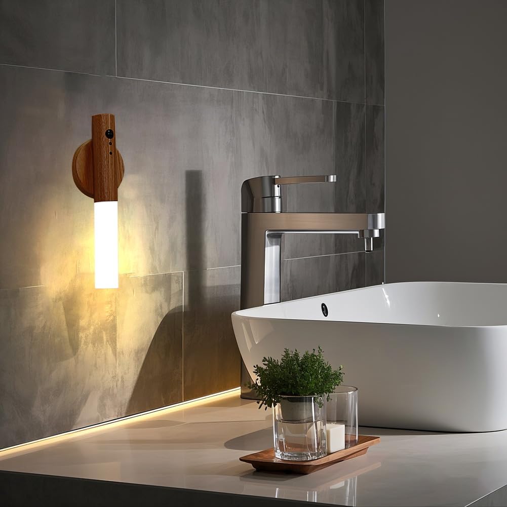 LANDGOO Motion Sensor Night Light RGB & Touch Control | USB-C Rechargeable Wooden Wall Sconce | Bathroom/Bedroom Light for Hallway, Stairs, Closet, Kids Room, Vanity, (Walnut Wood)