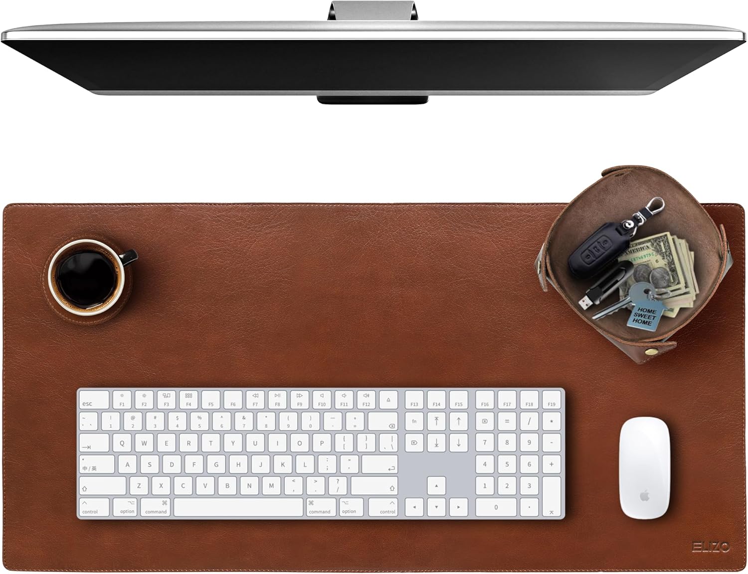 Elizo Leather Desk Mat Desk Pad Blotter Set - Real Full-Grain Leather (32x16) 2-Layer Genuine Desk Cover Protector & Large Mouse Pad | Computer Keyboard Desk Accessories for Office & Home