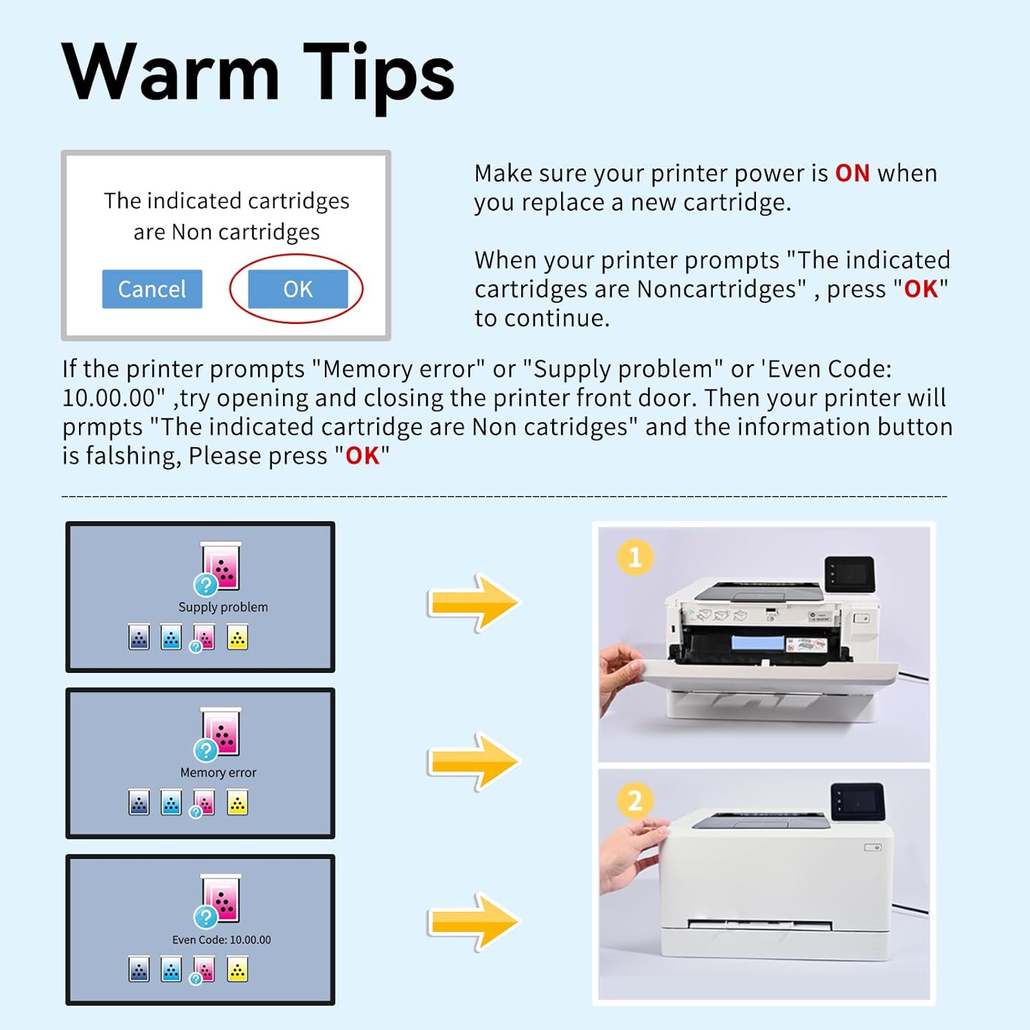 - 【206A 206X Toner Cartridges HP Set】: Our compatible hp 206A 206X toner cartridges with Chip are formulated to provide crisp text quality prints with true-to-life color for 206A 206X Toner Cartridges Set Package