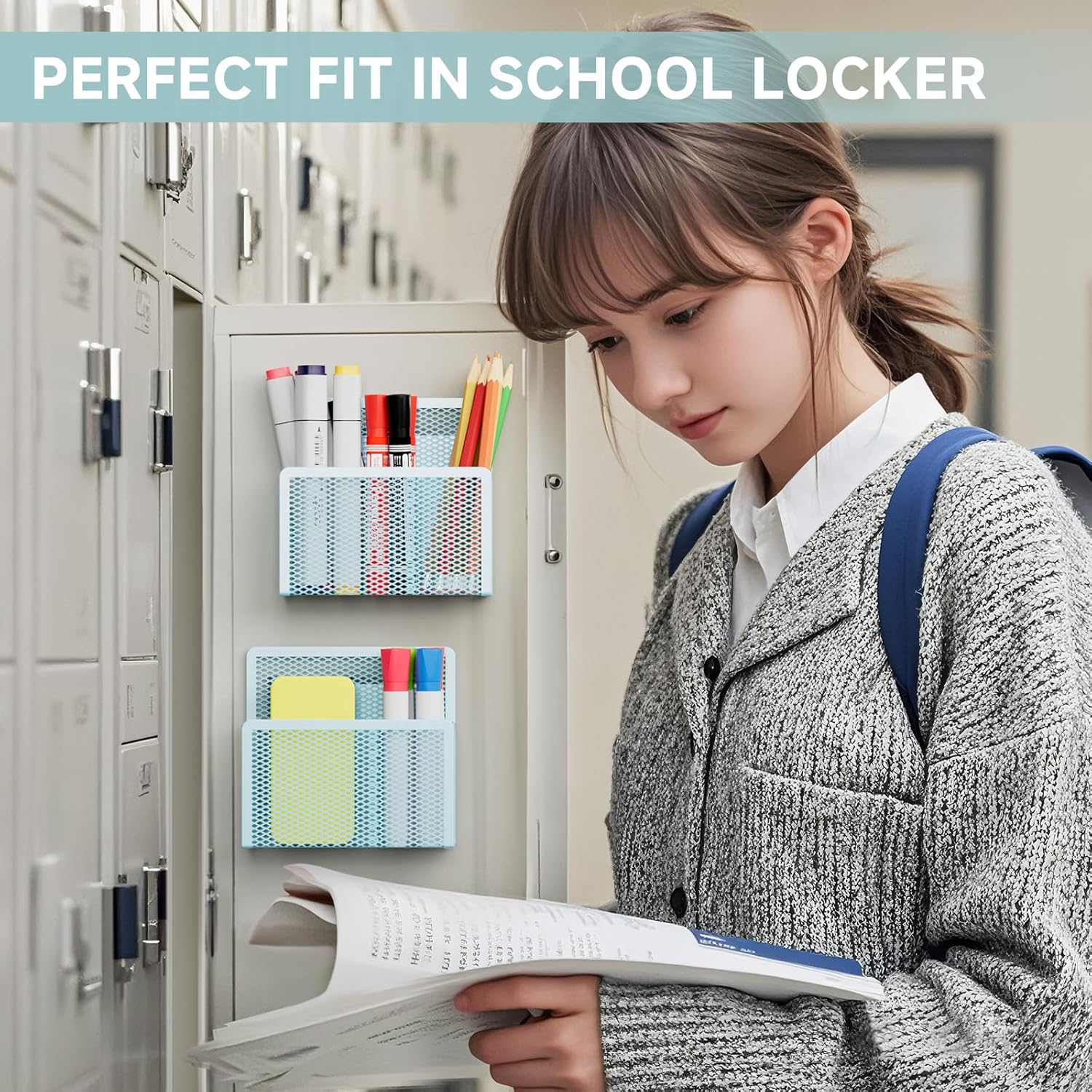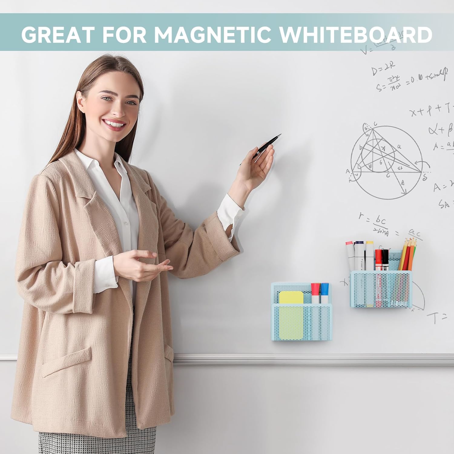 Magnetic Dry Erase Marker Holder, Mesh Pen Holder for Whiteboard,Magnet Pencil Organizer Storage for Refrigerator Locker Accessories Organizer for Home, School and Office(Blue)