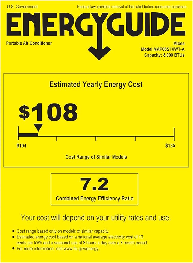 Midea 12,000 BTU ASHRAE (8,000 BTU SACC) Portable Air Conditioner, Cools up to 350 Sq.Ft., with Dehumidifier & Fan mode, Control with Remote, Amazon Alexa & Google Assistant, Easy-to-use and Install