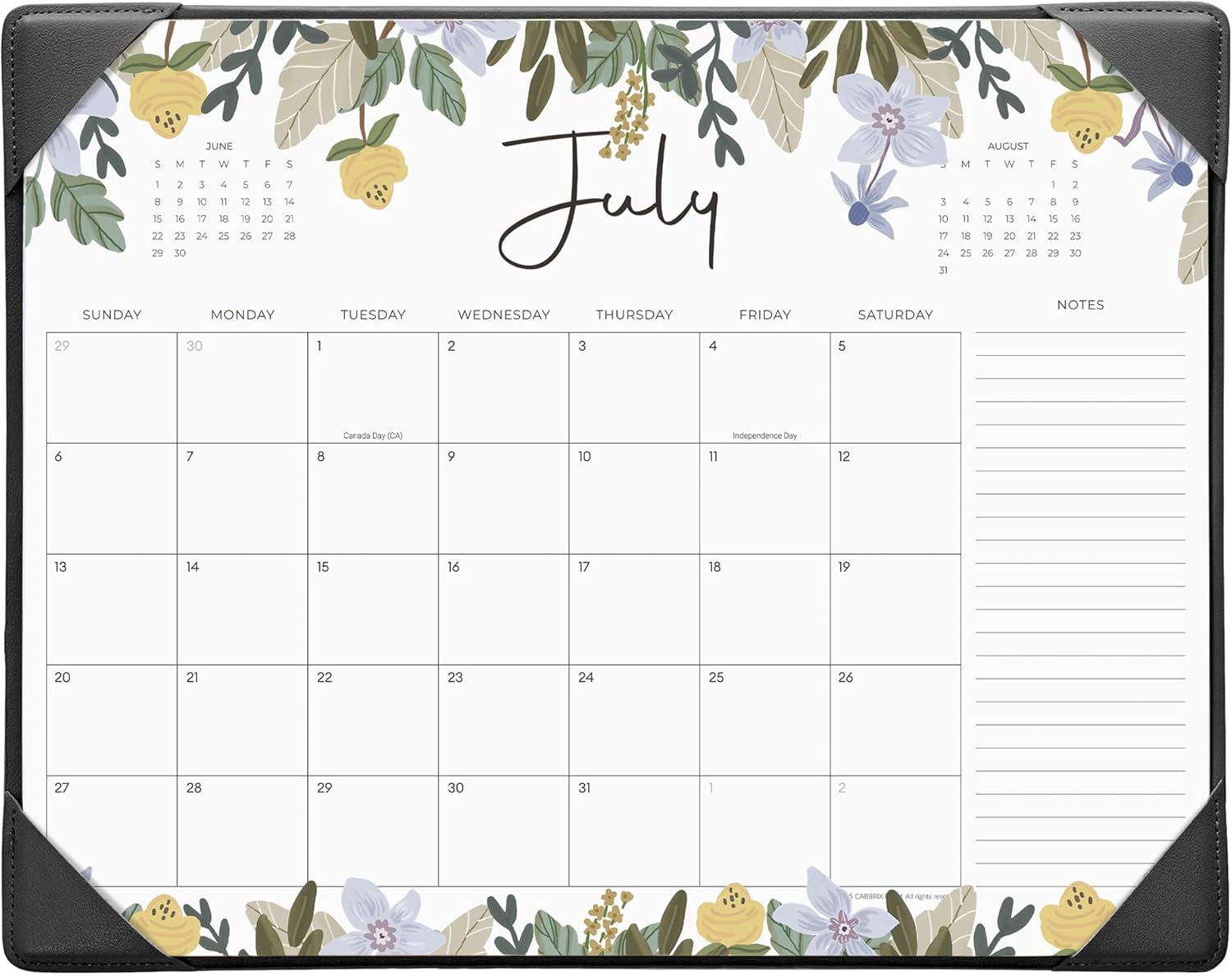 Cabbrix Desk Calendar 2025-2026 with Desktop Mat, Floral Desk Pad Calendar 15 x 12 Inch Runs From July 2025 to December 2026, Desk Blotter Calendar for Home School and Office (Black)