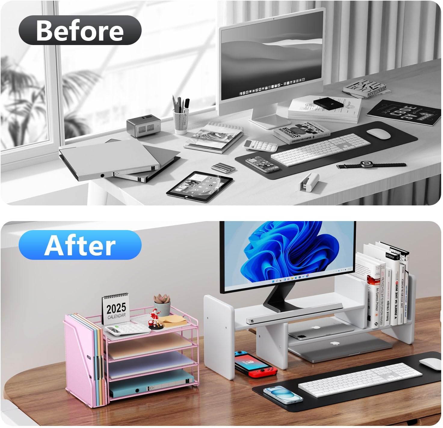 - γEasier AccessγThe paper tray organizer for desk is designed with an ergonomic layout, allowing you to easily locate and access files on your desk, making item retrieval more efficient. Its compact design enables it to store more office supplies without taking up too much space.