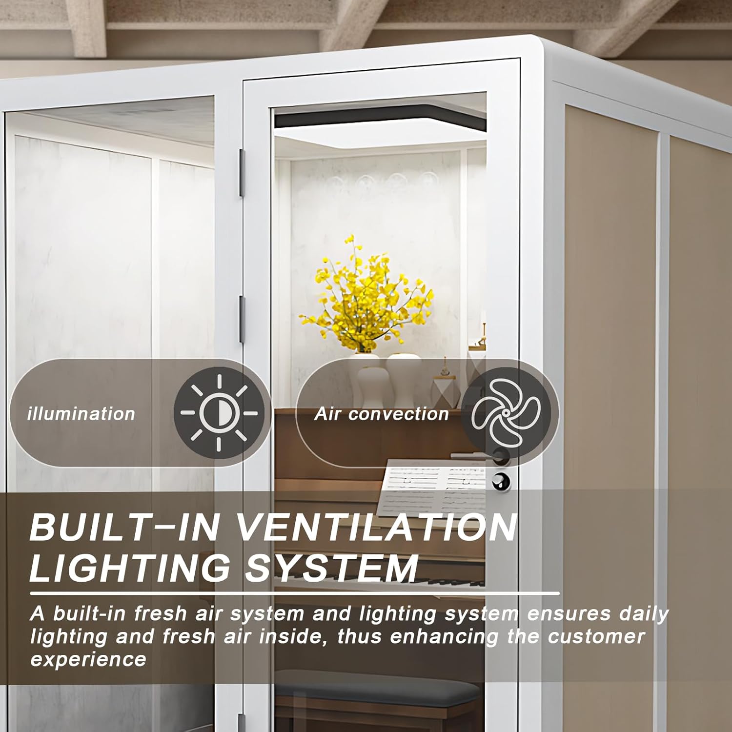 Office Sound Booth with Audio Privacy - Soundproof Booth Includes White with Wood Grain Side Trim,Soundproof Room with Light,Fans, Socket for Piano Room,Negotiation Room (70.86IN)