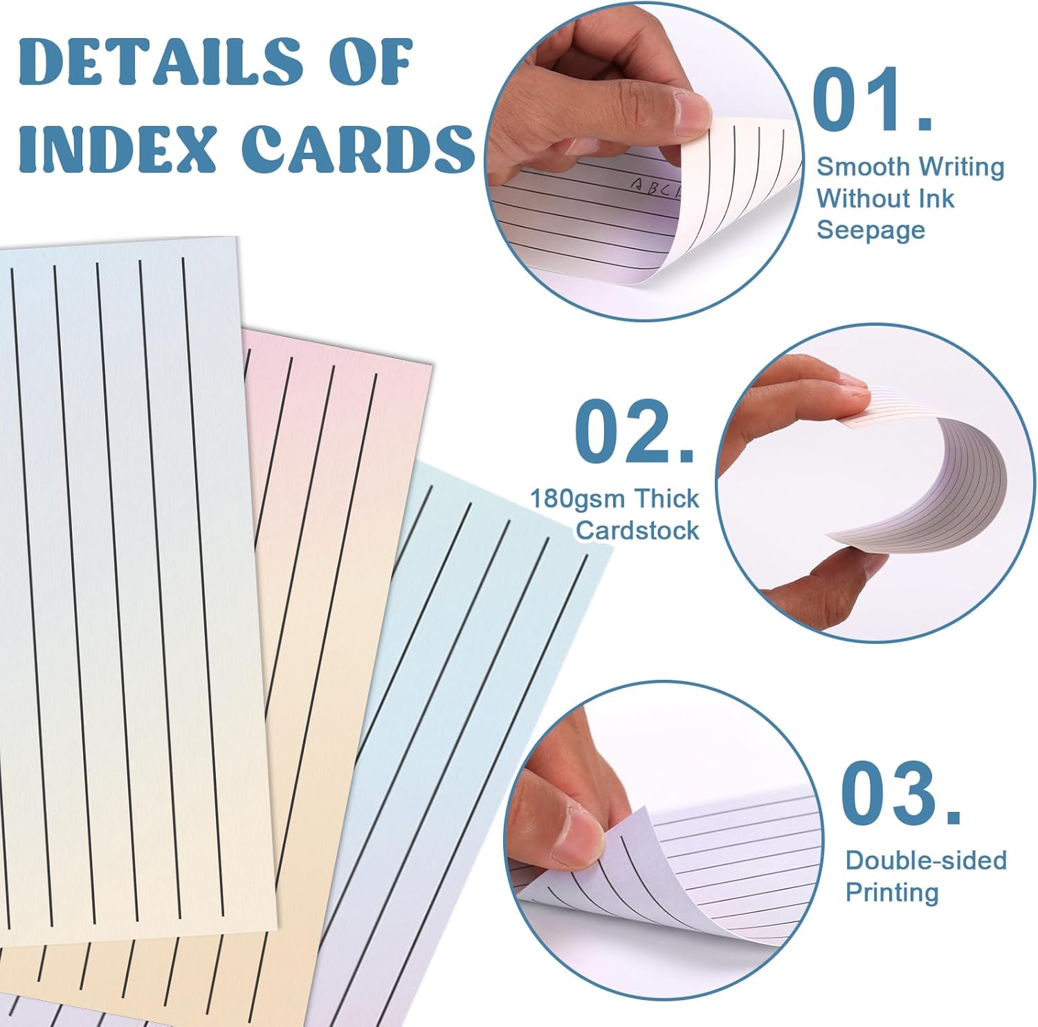 600 Pack Ruled Index Cards 3x5 Gradient Colored Index Cards Heavy Weight Note Cards 180gsm Flashcards Double Sided Notecards Lined Recipe Cards for Studying Drawing