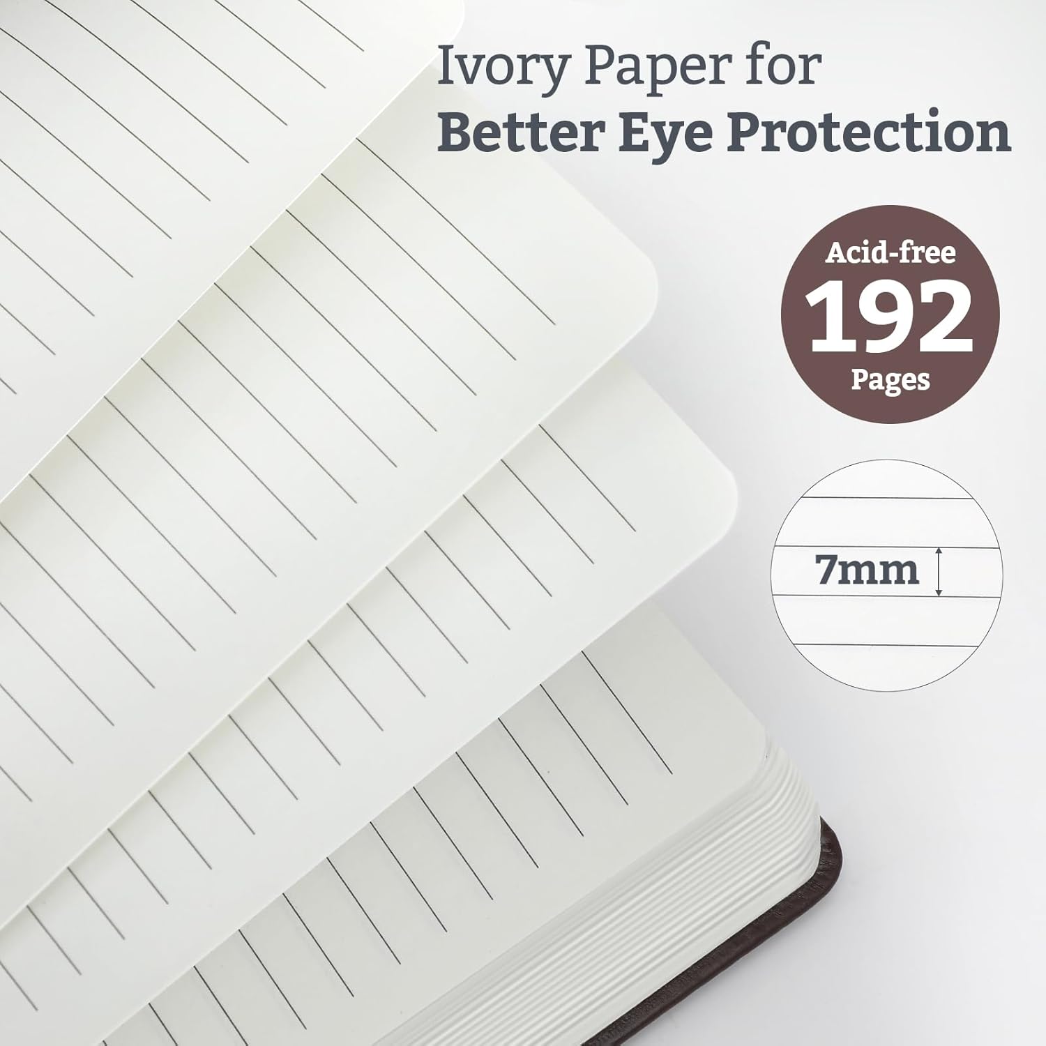 - Classic Lined Pages (2-Pack): Each notebook features 192 pages (96 sheets) of 100gsm acid-free college-ruled paper—no bleeding or ghosting. The soft ivory tone reduces eye strain.