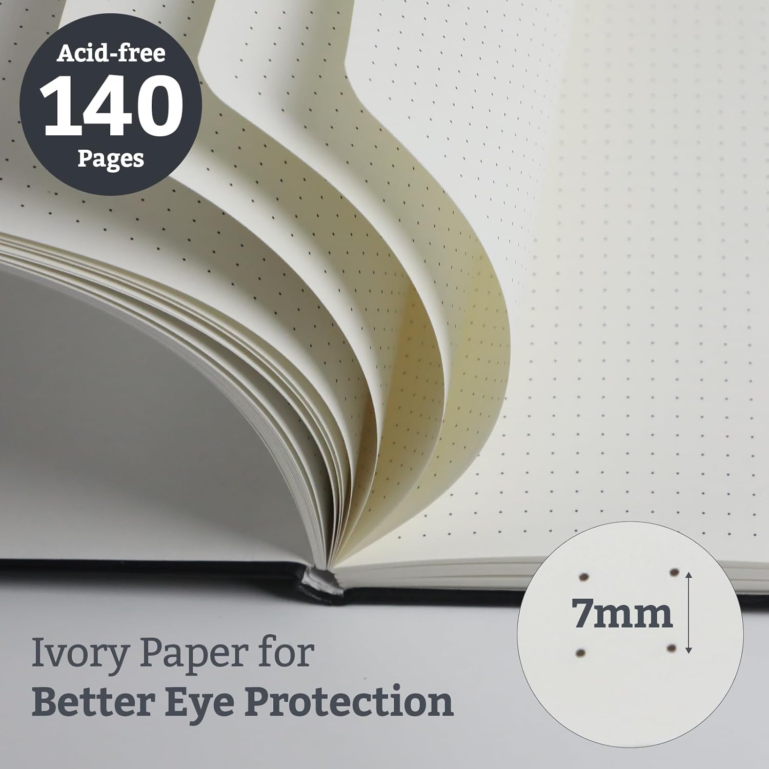 - Dotted Pages: 140 pages (70 sheets) of dotted, 120gsm acid-free paper resists bleeding and ghosting, compatible with most pens. Ivory hue eases eye strain.