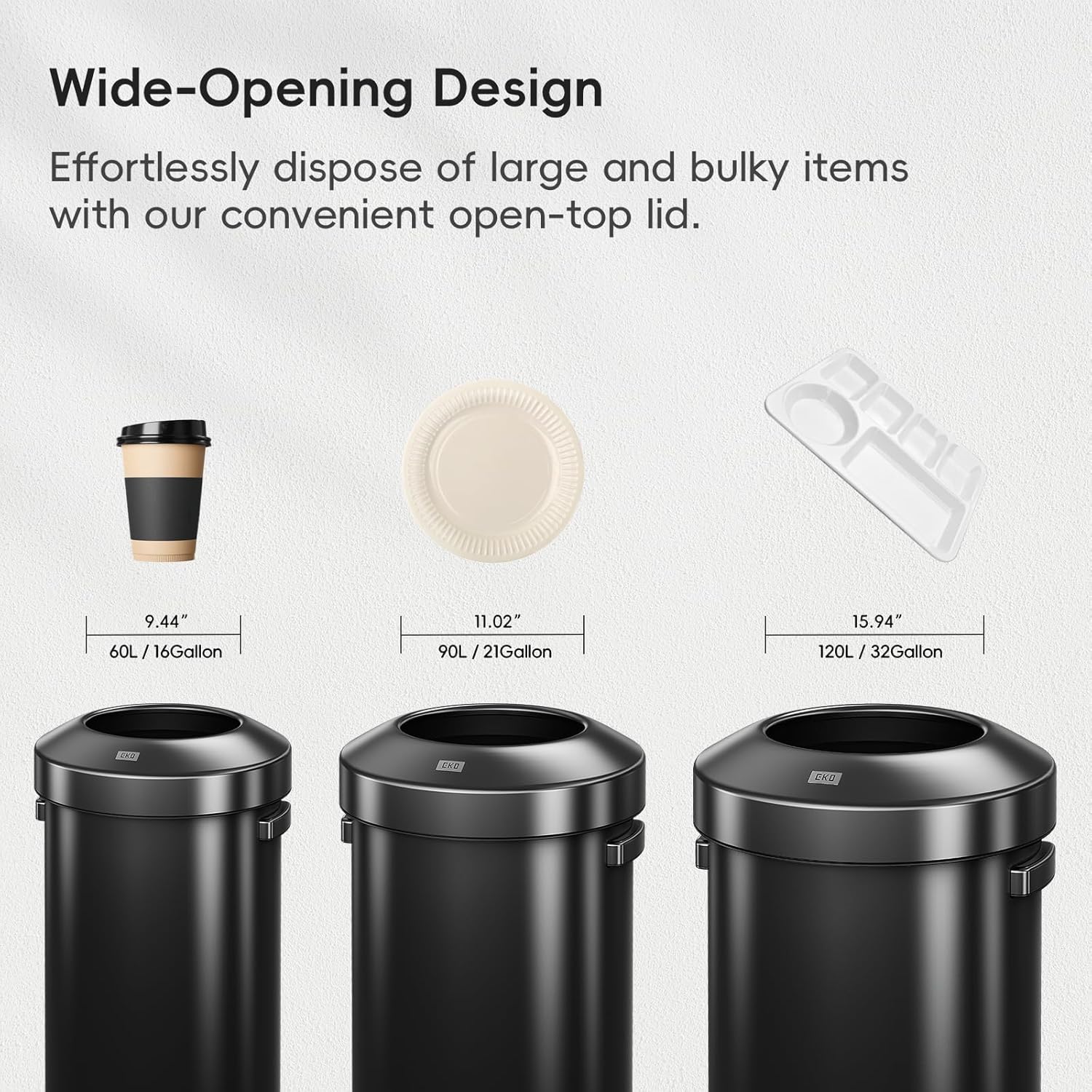 - EXTRA-LARGE CAPACITY: Perfect for high-traffic areas, our 16 Gallon/60 Liter open top trash can is ideal for businesses, hospitality, schools, healthcare facilities, and public spaces.