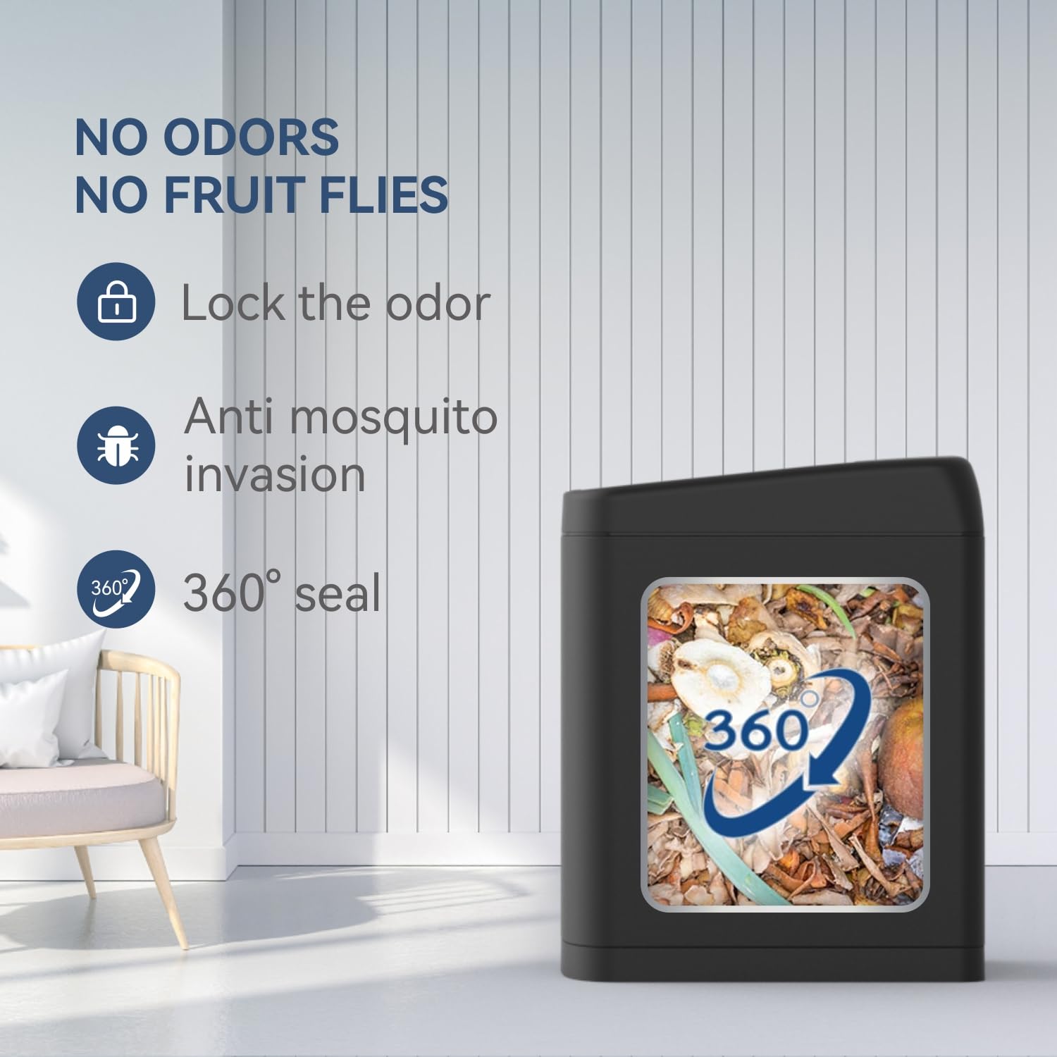 - γSleek Roll-Top Lid Designγ οΌThe roll-top lid design not only keeps the trash hidden but also prevents unpleasant odors from escaping. The smooth opening and closing mechanism effortlessly seals in the odor, keeping your kitchen smelling fresh.