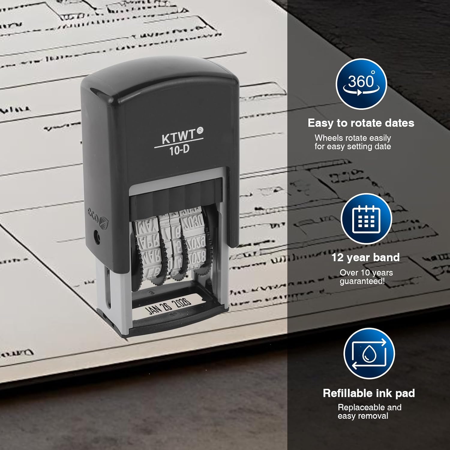- KTWT Self-Inking Date Stamp Easy to use date stamper with adjustable numbers for 12 consecutive years, It starts with 2025 and ends with 2036