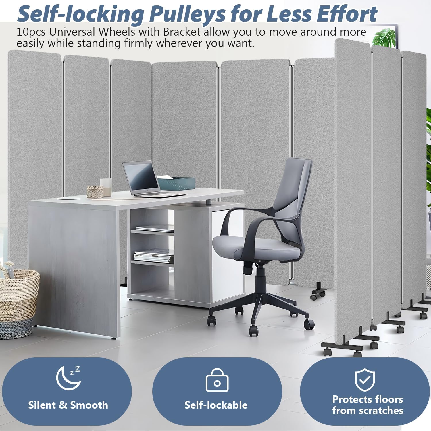 - Flexible Mobility & Storage:Equipped with 10 self - locking universal wheels on a 12.6"/32 cm pedestal, moving the Office Divider around is a breeze. When not in use, it can be fully folded for compact storage, taking up minimal space. Its foldable design makes it perfect for offices with limited storage space.