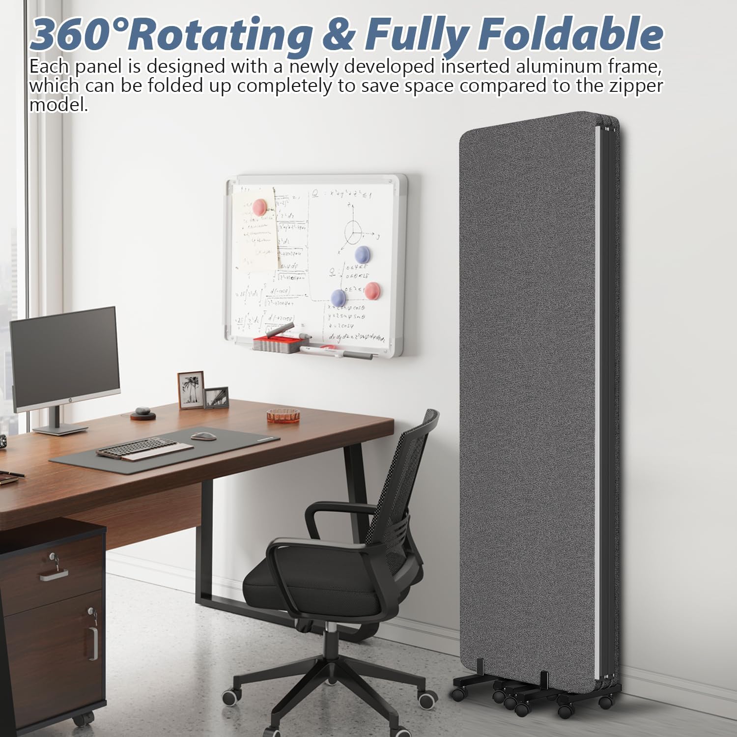 • Flexible Mobility & Storage:Equipped with 10 self - locking universal wheels on a 12.6"/32 cm pedestal, moving the Office Divider around is a breeze. When not in use, it can be fully folded for compact storage, taking up minimal space. Its foldable design makes it perfect for offices with limited storage space.