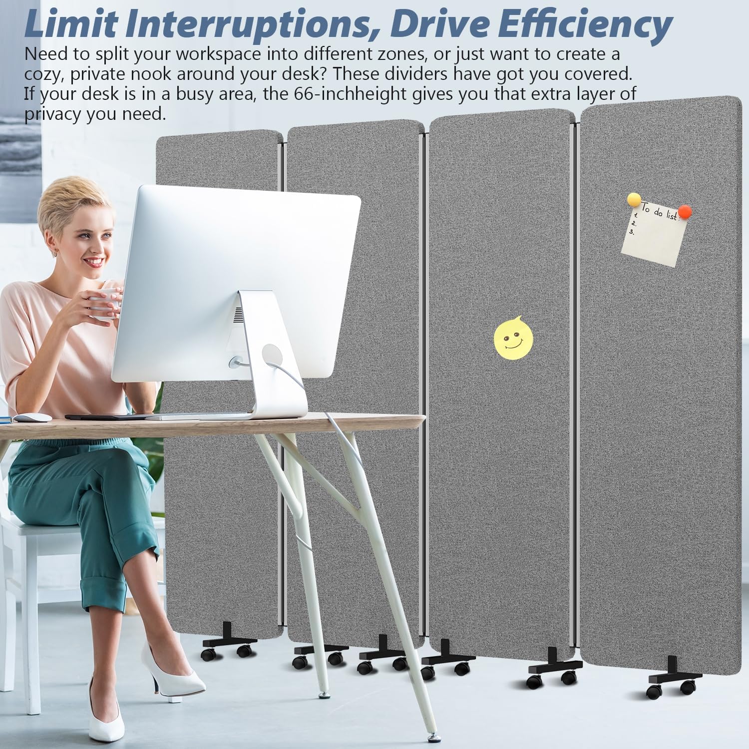 Acoustic Room Divider Privacy Panel with Wheels, 4 Panel Soundproof Room Divider (Aluminum Frame) for Room Partition, Folding Room Dividers Separation Office Cubicle Wall Sound Proof Partition Divider