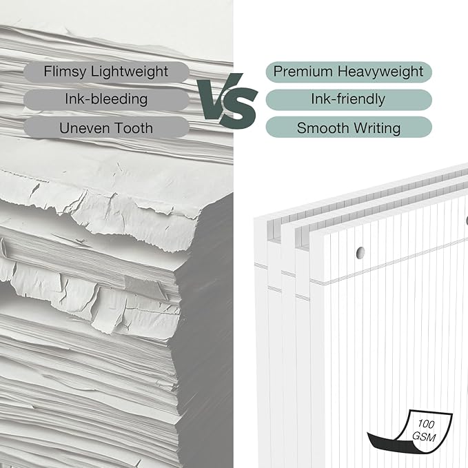 - Premium Quality & Durable Lined Paper: POPRUN Loose Leaf Paper contains 100 sheets (per Pack) of 100GSM / AA Grade thick white paper — equivalent to the thickness of 125 sheets of 80GSM paper — paired with a bleed-resistant surface that enables effortless writing with pens or pencils.