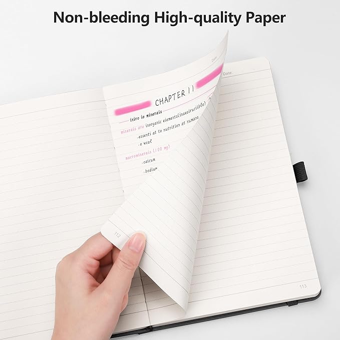 - PREMIUM PAPER: Crafted with time-resistant 100 GSM paper, this journal preserves thoughts flawlessly while resisting ghosting/bleed-through with most pens. Acid-free material ensures long-term preservation, and its smooth surface enhances writing clarity - blending durability and premium performance