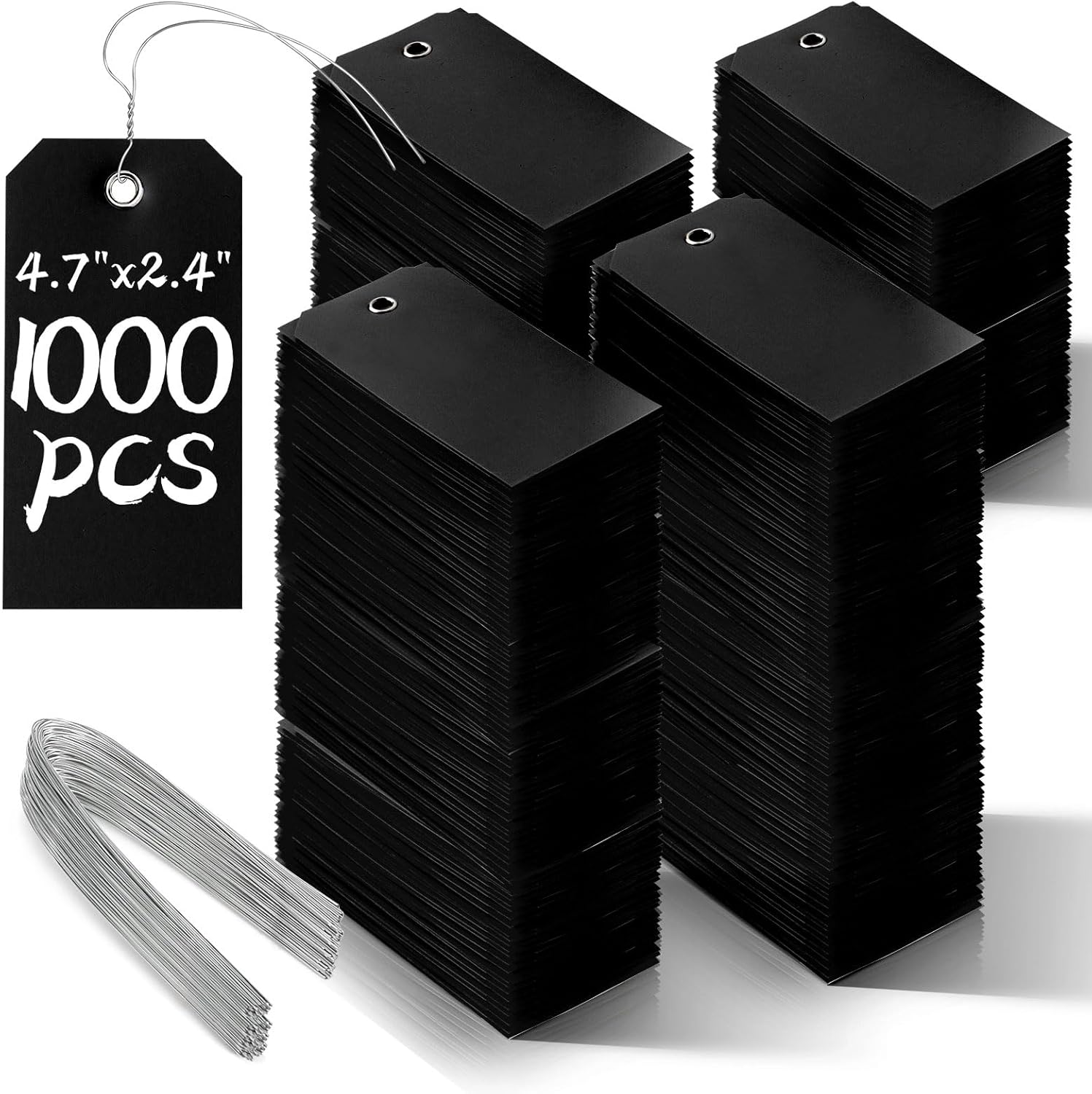 1000 Pieces Plastic Shipping Tags with Wire Labeling Tags Waterproof Hang Tags with Reinforcement Hole Writable Luggage tag Loops for Equipment Inventory Parts Garage (Black, 4 3/4" x 2 3/8")