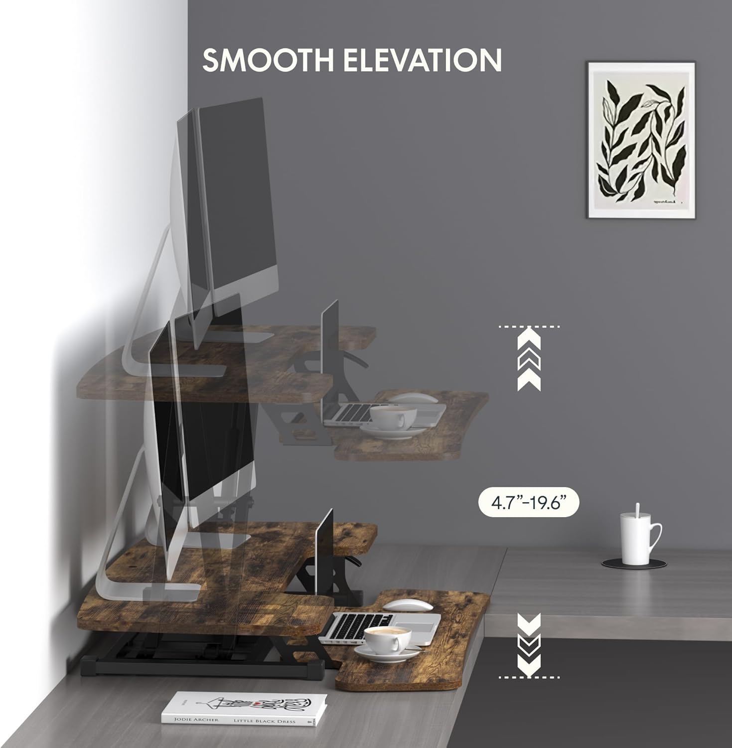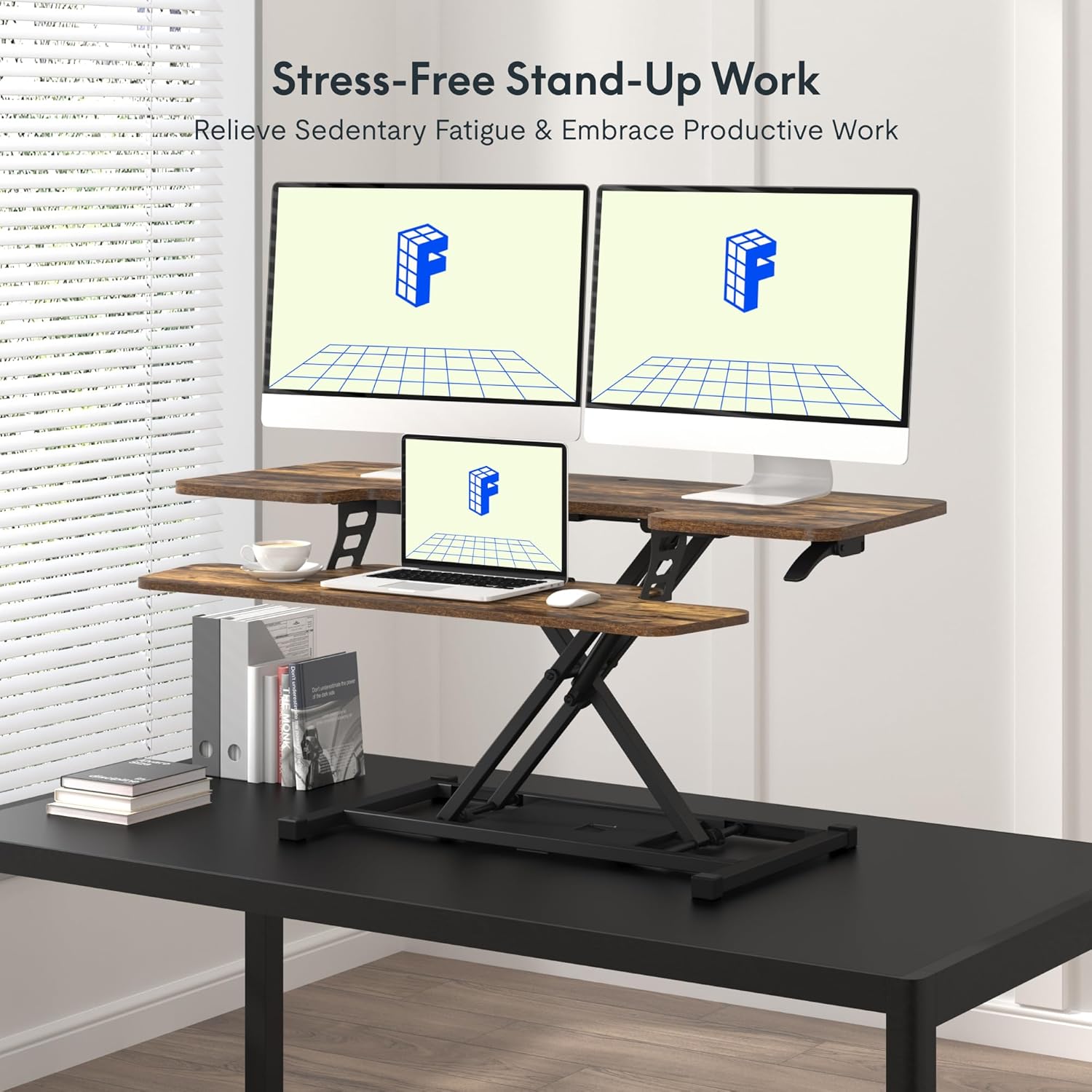FLXISPOT 42-inch Standing Desk Converter, Sit to Stand Dual Monitor and Laptop Workstation with Wide Keyboard Tray, Rustic Color