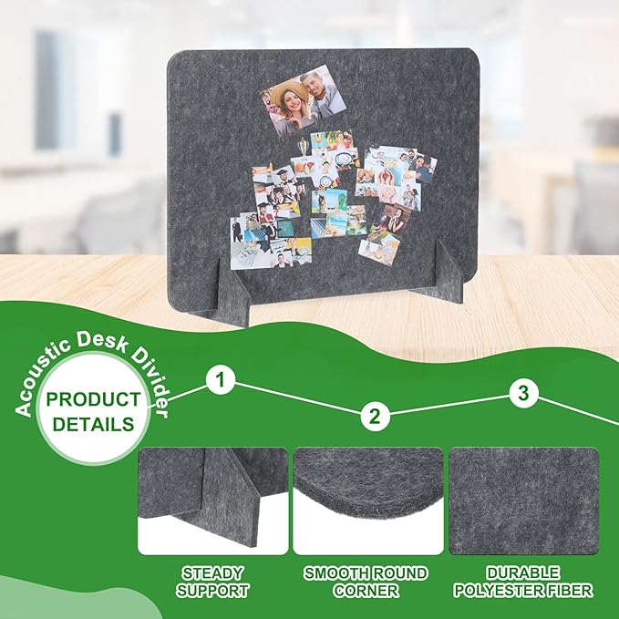 - Advantage: Excellent Material: Made of polyester fiber, these acoustic desk dividers are durable and reliable, and they are not easy to fade, break, or deform. It can reduce noise, and protect your privacy, effectively increasing your productivity and concentration; Portable Size: The portable and lightweight desk divider can be easily moved, and stored anywhere when not applied, saving you space. Stand Firmly: The support foot can ensure that the desk divider stands steadily without falling.