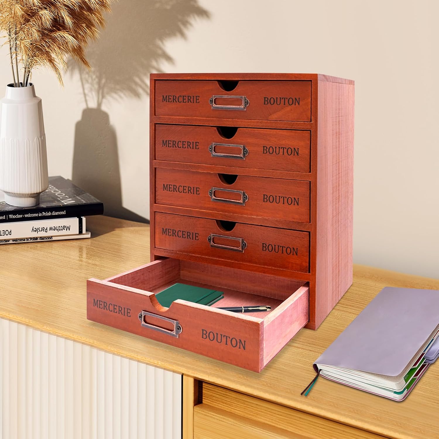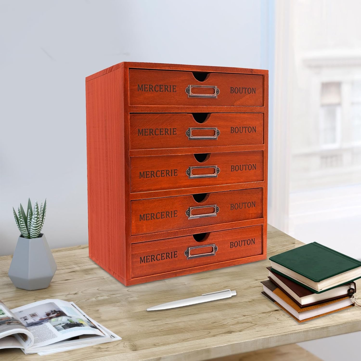 Vintage Drawer Wooden Drawers Organizer, 16-Drawer Desktop Organizer With Drawers, Iron Label Holders, Brown, For Store Cosmetics, Files, Books, Letters, Papers, Magazines (5-Drawer)
