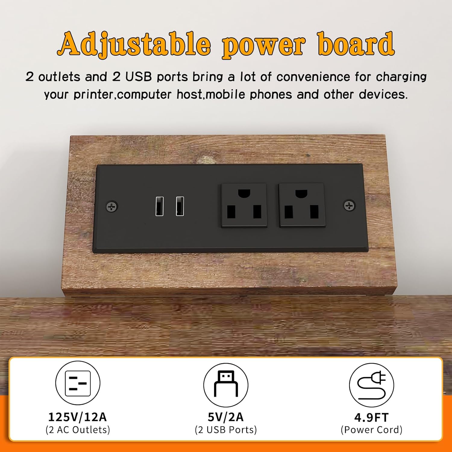 - 【Sturdy and Heavy&Built-in Power Outlets】each shelf is reinforced with a sturdy steel tube underneath for enhanced stability and impressive weight capacity. Built with premium particle board Printer table with charging station contains 2 power outlets and 2 USB charging ports
