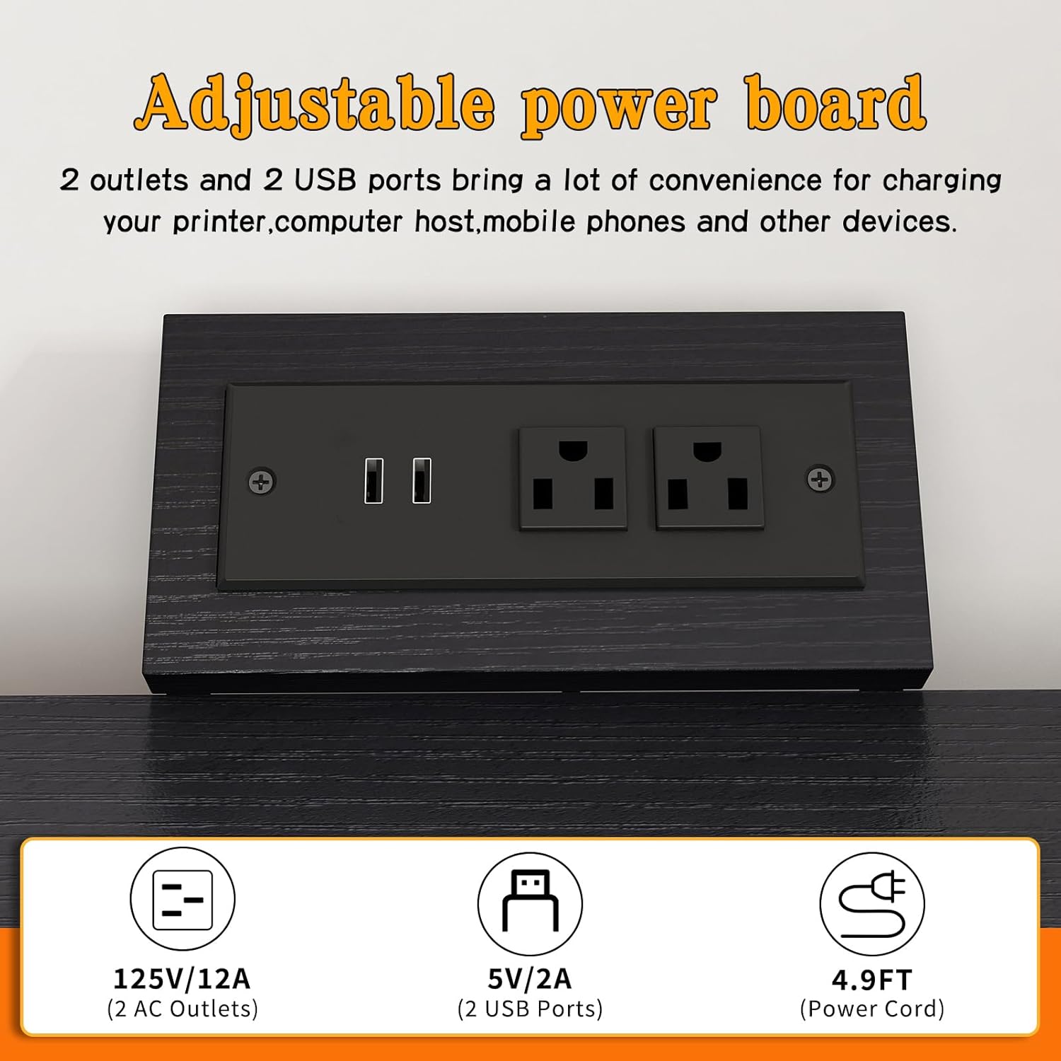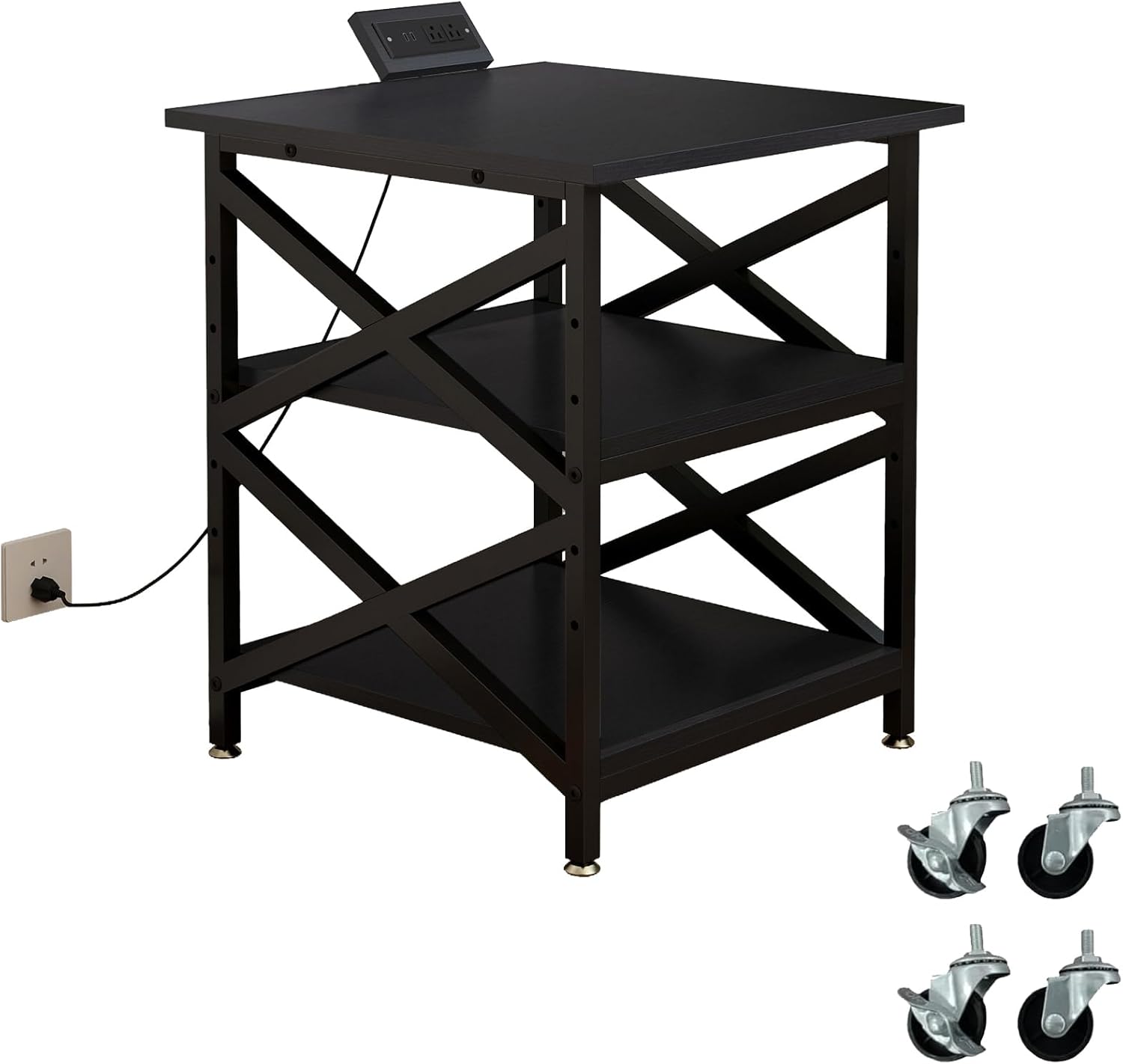 - 【Sturdy and Heavy&Built-in Power Outlets】each shelf is reinforced with a sturdy steel tube underneath for enhanced stability and impressive weight capacity. Built with premium particle board Printer table with charging station contains 2 power outlets and 2 USB charging ports