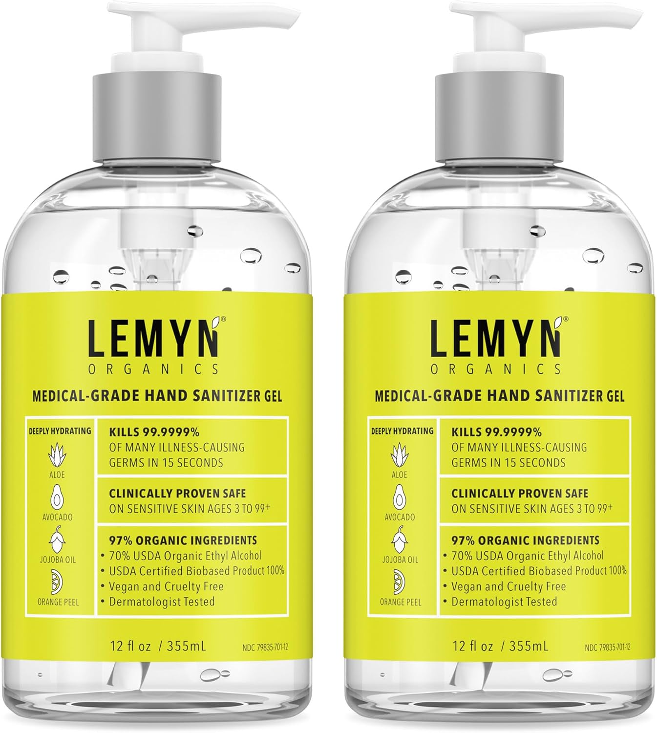 Medical Grade Hand Sanitizer Gel - 97% ORGANIC - 12 FL.OZ. (PACK OF 2)